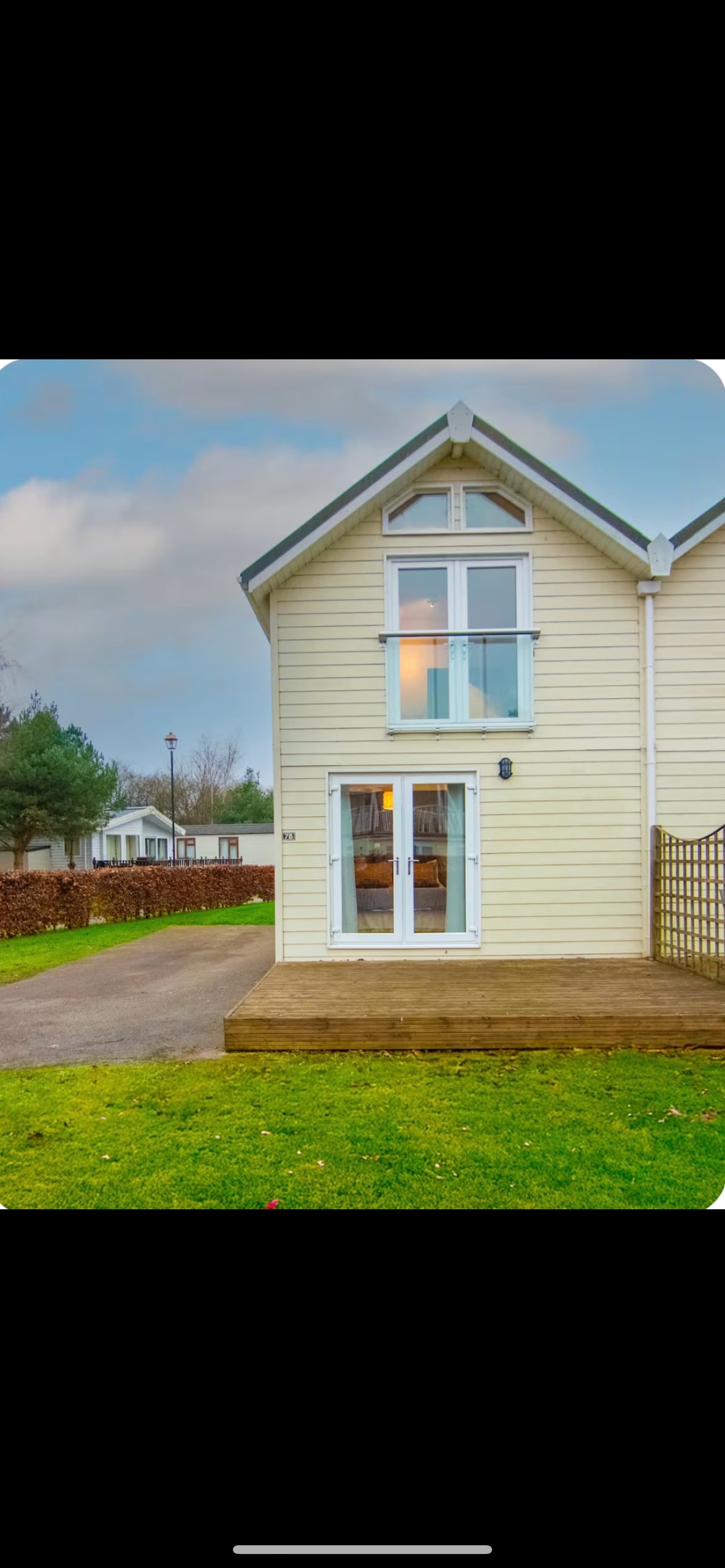 This beautiful, lakeside lodge overlooks a stunning lake, golf course and tranquil Nature Trail beyond for walks.. Its peaceful ambiance makes it perfect for holiday guests to chill. The well-equipped cottage opens onto a spacious decking area, furnished with dining and relaxing seating, an amazing pergola and bbq. Leading to the private dock, it allows fishing from the lake. The park Leisure Suite has a fab pool, steam room, sauna and gym, with trendy Cafe Revive, restaurant and Spikes Bar!
