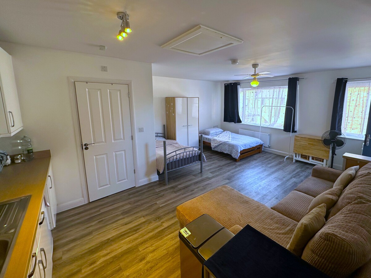 A newly built, small but practical, self contained annex adjoined to the side of the main house by the side and from the ceiling. It has it's own entrance for privacy and a key safe that allows guests to let themselves in. It's an ideal place for a short term stay and offers good value in a very expensive city. It has a small kitchen area with microwave, toaster, mini fridge and kettle. The annex also has a desk work space and a shower.