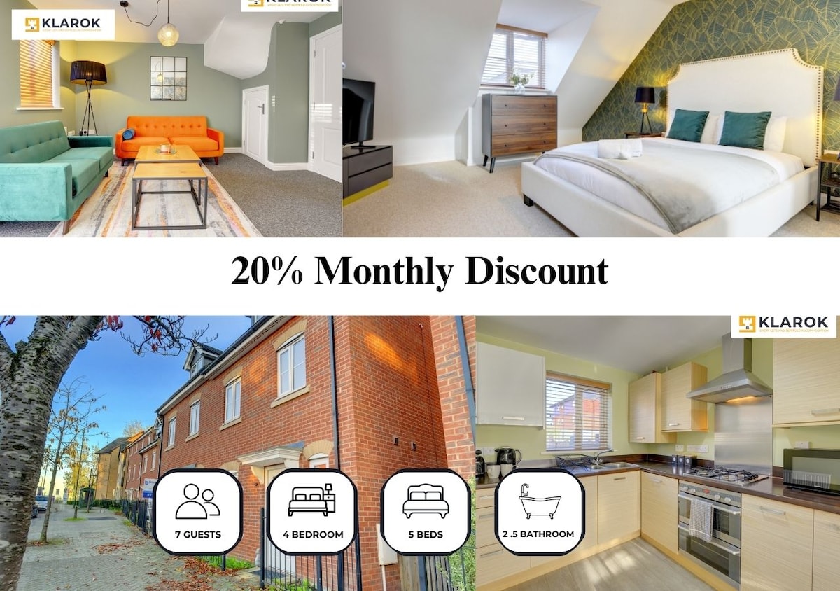 彼得伯勒4卧室住宿+加大双人床套房,适合工作和休闲