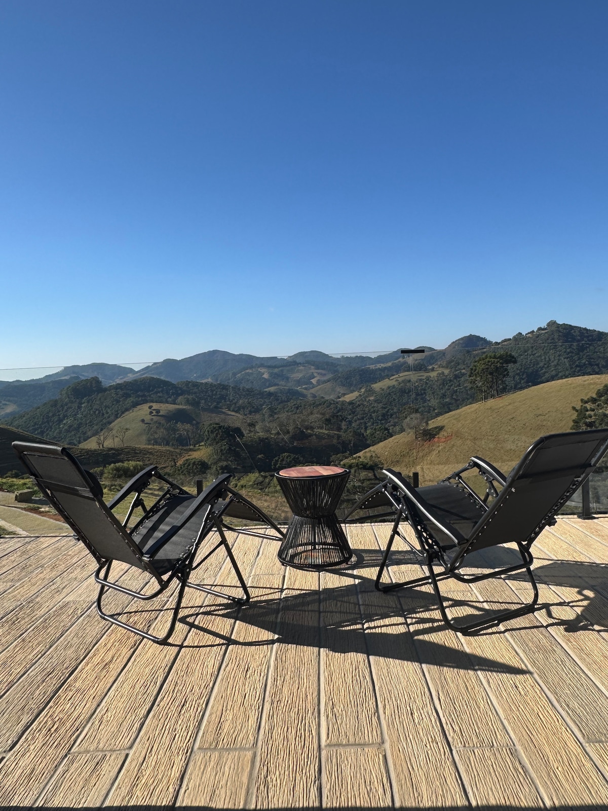 Located on one of the highest mountains in São Bento do Sapucaí, Chalet nas Nuvens (just 20 minutes from downtown São Bento) is a luxurious glass mountain house offering exclusive trails, a farm with animals, hot tub, thousands of fruit trees, a bbq, deck with the most beautiful sunset in the region, a fireplace, fire pits, and magnificent year-round views of the Serra da Mantiqueira Mountains. We like to call it "heaven on earth."