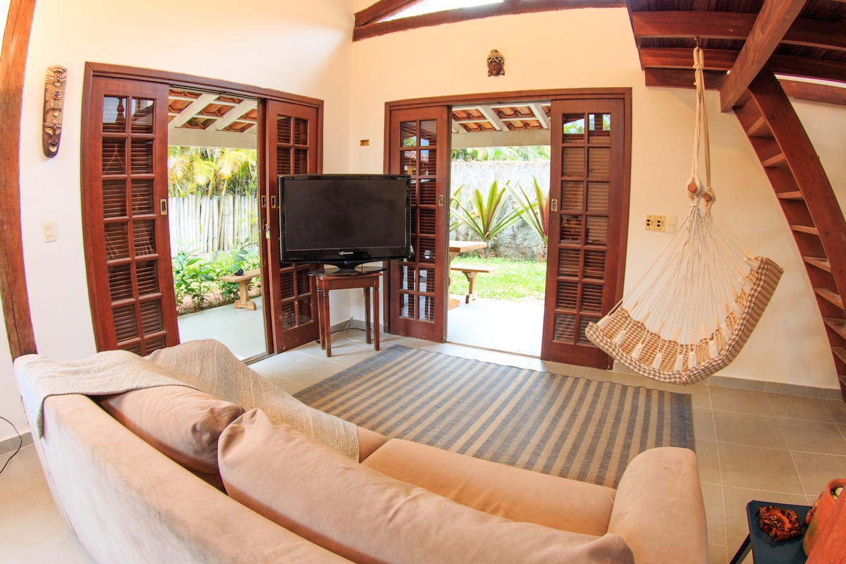 Sou um artista plástico ítalo-suíço e convido você a conhecer o meu lindo refúgio e fonte de inspiração. A casa fica no meio do mato, na beira do rio e a 5 minutos a pé (200m) do mar. A casa é charmosa, porém rústica; é para amantes da natureza com espírito esportivo. Lugar calmo e ideal para quem quer ler, escrever ou relaxar. Tem supermercados e restaurantes bem perto; deixe o carro e faça tudo a pé. Alugo por um mínimo de 2 dias e durante feriados, por um mínimo de 3 dias.