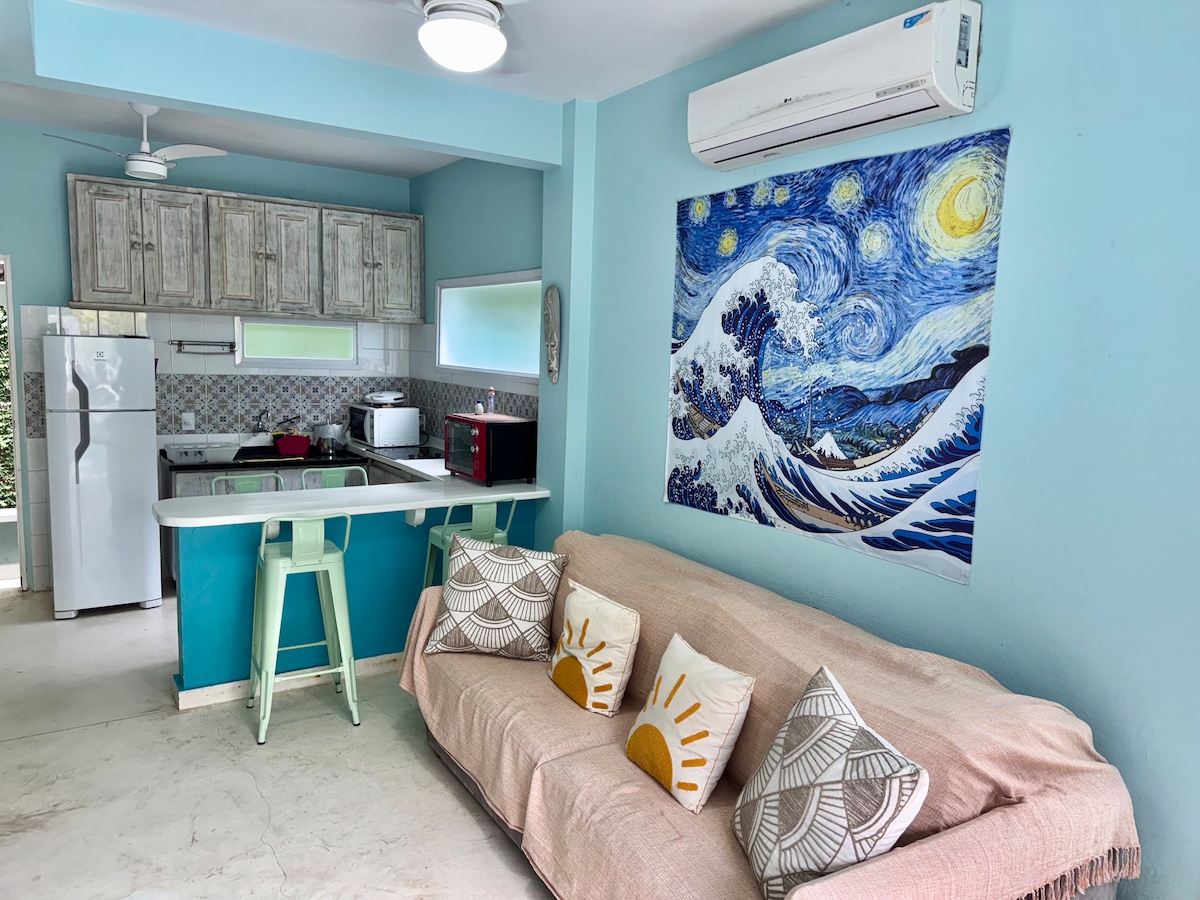 Casa com excelente localização!!!! A poucos passos da praia de Camburi, ideal para um casal, toda equipada, com eletrodomésticos, roupas de cama e banho de ótima qualidade!!!! Casinha recém construída e com muito bom gosto, rua bem tranquila onde vc faz tudo a pé... mercado, farmácia, lanchonete, restaurantes, lojas.... e o principal, muito perto da praia!!!! Estamos à 150 mts dos portos de entrada que dá acesso à praia de Camburi.