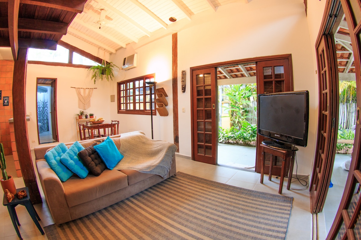 Sou um artista plástico ítalo-suíço e convido você a conhecer o meu lindo refúgio e fonte de inspiração. A casa fica no meio do mato, na beira do rio e a 5 minutos a pé (200m) do mar. A casa é charmosa, porém rústica; é para amantes da natureza com espírito esportivo. Lugar calmo e ideal para quem quer ler, escrever ou relaxar. Tem supermercados e restaurantes bem perto; deixe o carro e faça tudo a pé. Alugo por um mínimo de 2 dias e durante feriados, por um mínimo de 3 dias.
