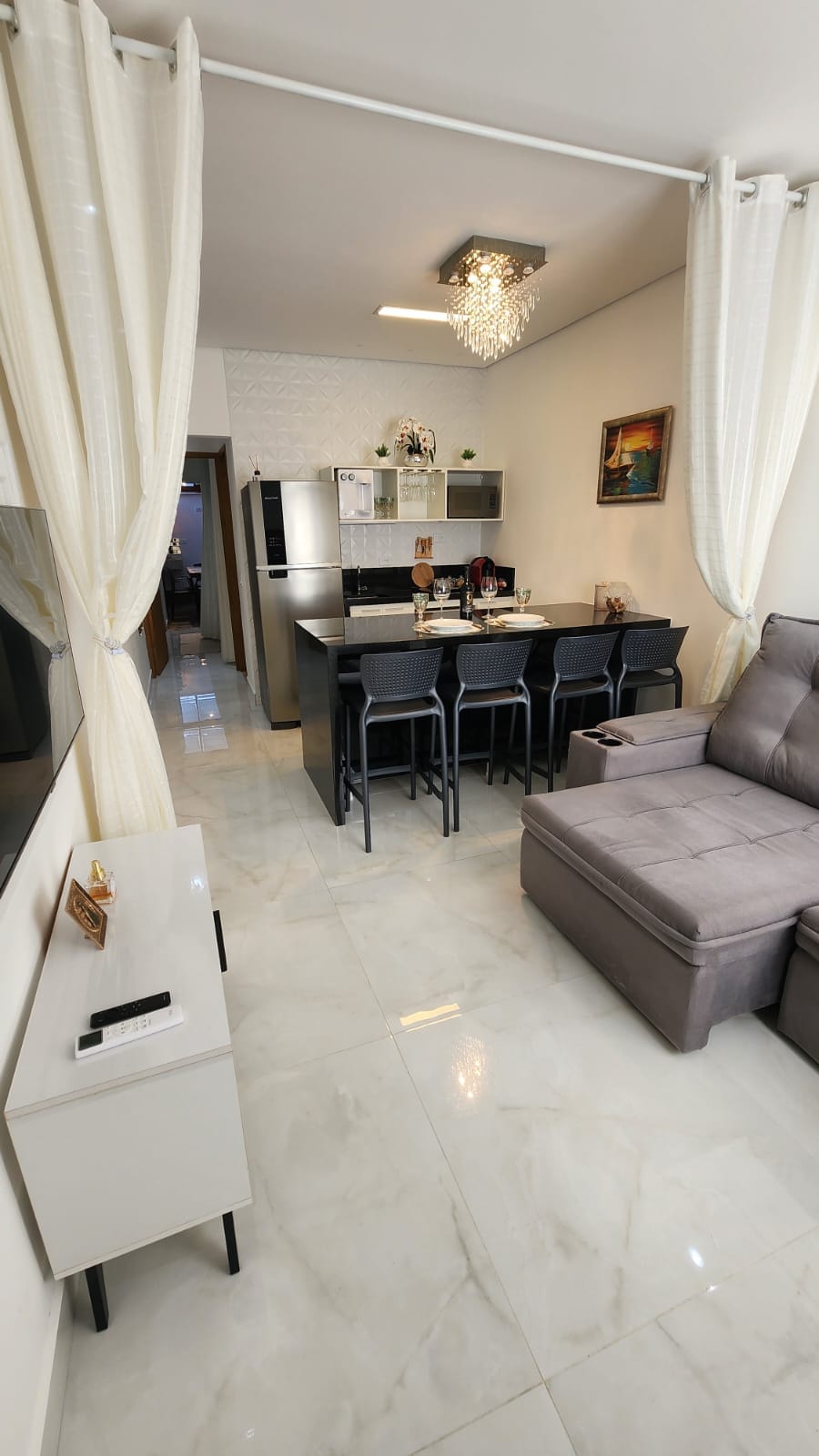New high standard apartment, decorated and cozy, with a privileged location in the center of Juquehy on Shopping Monjolo street, being possible to do everything on foot. Gated community. Three spaces, large living room with Gourmet Kitchen, two bedrooms, one suite, 2WC, Air Conditioning in all environments, Wi-Fi, Smart TV, Brewery, Barbecue, Air fryier, Laundry, Dishwasher... Two Double Beds, Two Single Beds (Bunk). Bedding not included.