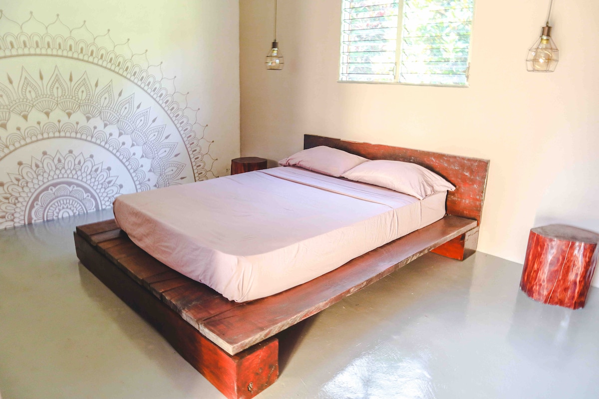 Cuarto ideal para dos personas a unos pasos de la playa Guanico. Relájate en este espacio tranquilo y luminoso. Cuarto con cama doble, aire acondicionado y abanico de techo. Disponen de una terraza con sillas y hamacas. Bloque sanitario exterior con ducha y baño privado. No tenemos wifi/Starlink en nuestros alojamientos porque la señal está mala en la zona. Lo más recomendado es comprar un CHIP MÁS MÓVIL (cuesta 1,50$) y su recarga de 6$ que permite tener wifi ilimitado en su celular por 7 días