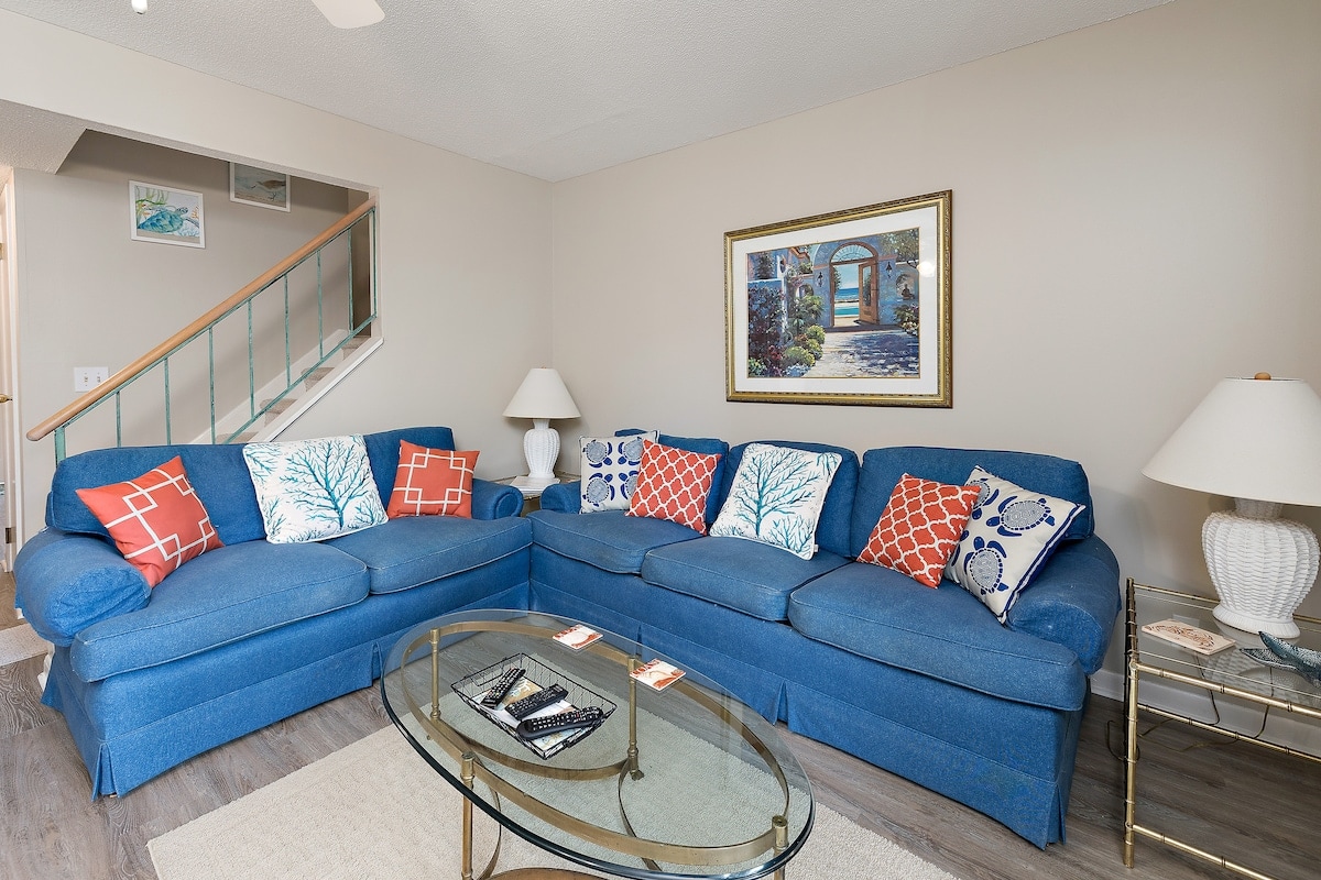Delightful light and airy townhouse only 1 mile from the beach and 1 mile from the village. This beautifully updated 2 bedroom + 1.5 bath home is full of comfort with a private fenced back patio and swimming pool just steps away. This home is family friendly. Simplicity at the beach. Complimentary coffee will be waiting upon arrival. We can’t wait to host you! **The twin bedroom has been upgraded to a king bedroom. We are awaiting pictures and will upload as soon as we have them!**
