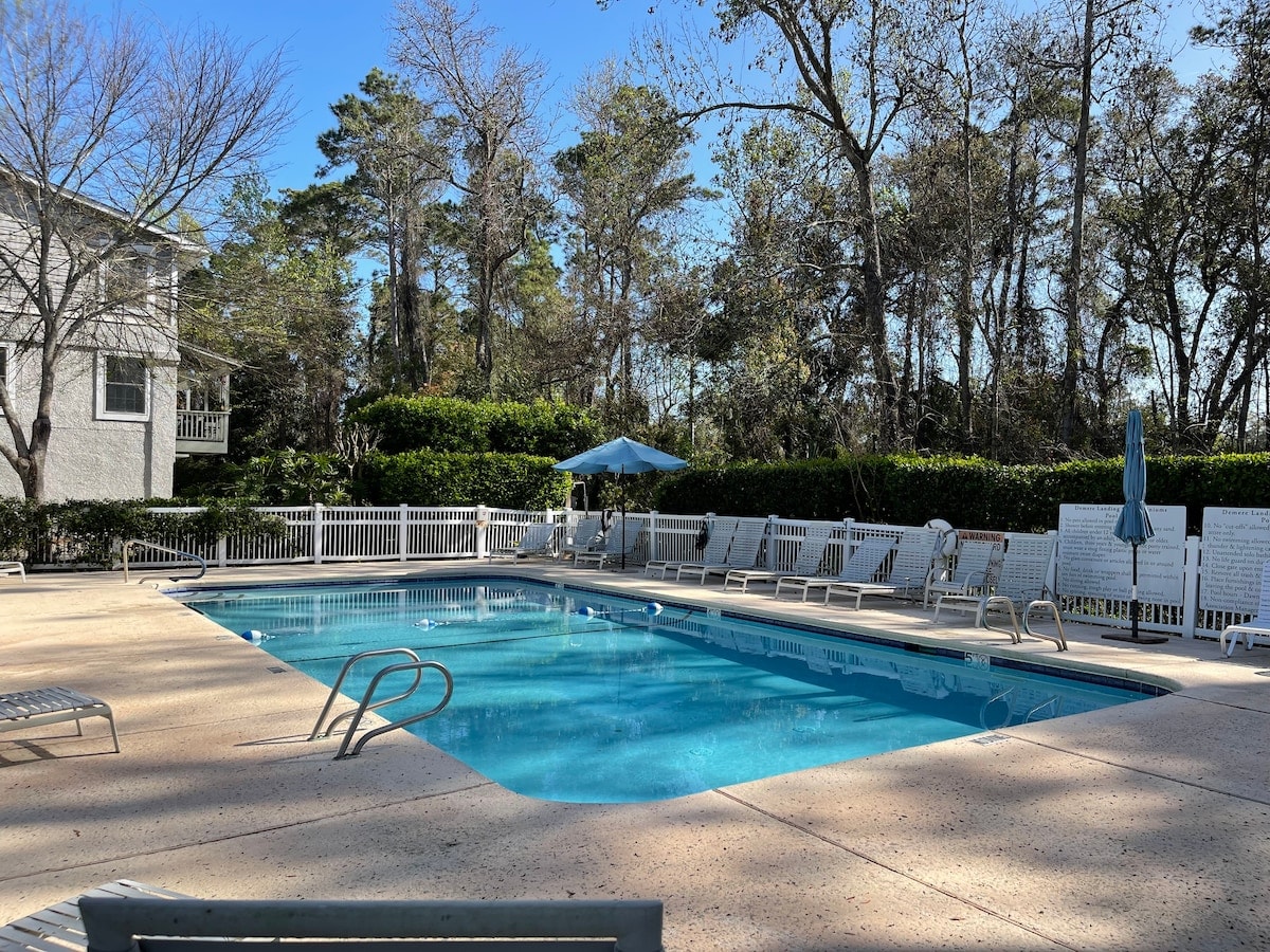 Relax on the beaches of charming St. Simons Island in this quiet, beautifully renovated 2 story townhouse. New comfortable mattresses/bedding, fully equipped kitchen and pool. Adjacent to health club, bike trails, golf course. 5 mins to beach/village