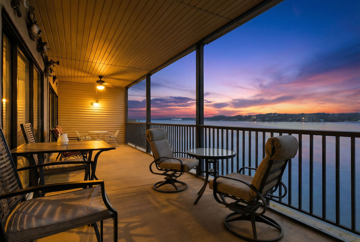 Wake Lake at The Falls Condo is a lakefront, 3-bedroom vacation rental in Lake Ozark at the 2.5-mile marker. This 1st-floor unit offers a screened patio with lake views, two community pools, tennis and basketball courts, and a playground—perfect for families. Inside, enjoy an oversized sectional with lake views, SmartTVs, and a fully equipped kitchen. Ideal for year-round getaways, close to dining, shopping, and lake activities.
