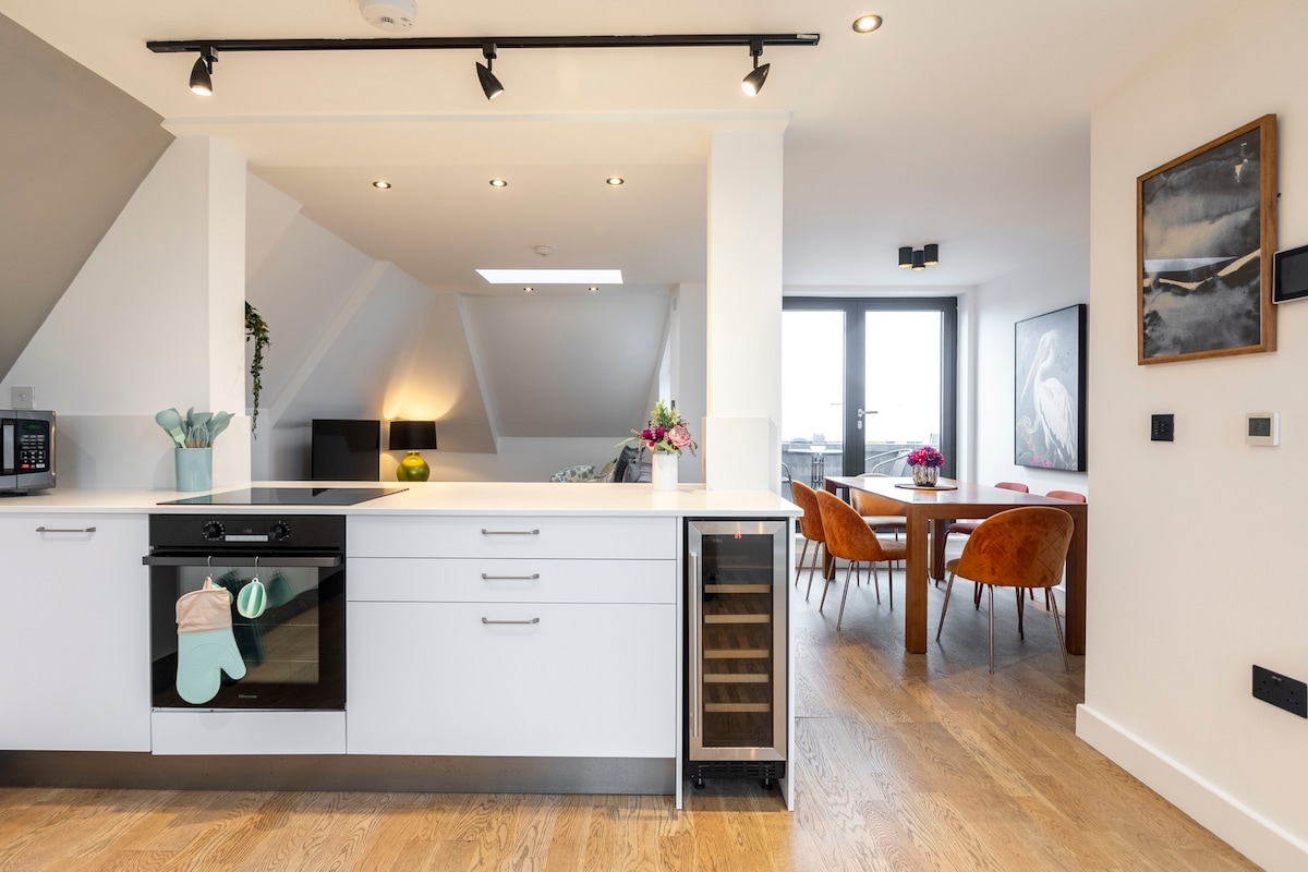 Experience London from one of its most vibrant areas. This stylish, modern flat sleeps up to 6 guests and is located right next to the world-famous Camden Market and Camden Lock Market, placing street food, live music, and boutique shopping on your doorstep. Bright and contemporary, the flat offers a relaxing retreat after a day exploring the city. You’ll enjoy a fully equipped kitchen, superfast Wi-Fi, a dedicated workspace and air conditioning, ideal for both leisure stays and business trips.