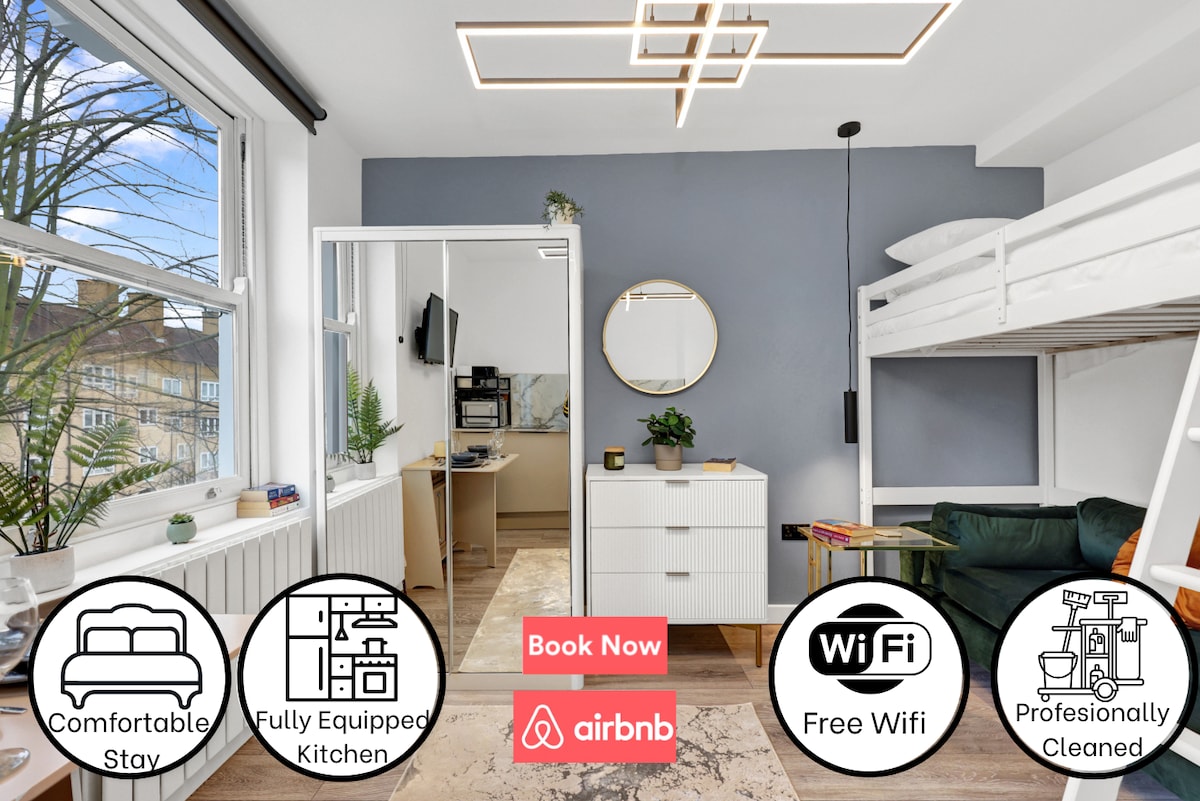 Come, relax and soak in the view over Camden gardens. This cosy, bright, flat combines warm textiles with crisp linens; it's modern, tastefully furnished and safe, situated in a well maintained 19th century Victorian building. This flat is located in the heart of Camden, by Regent's Canal. This fantastic area is full of life, with music, bars and restaurants. The Camden Market is only a few minutes away. There are variety of grocery stores, cafes at close proximity, Regents Park with London ZOO.