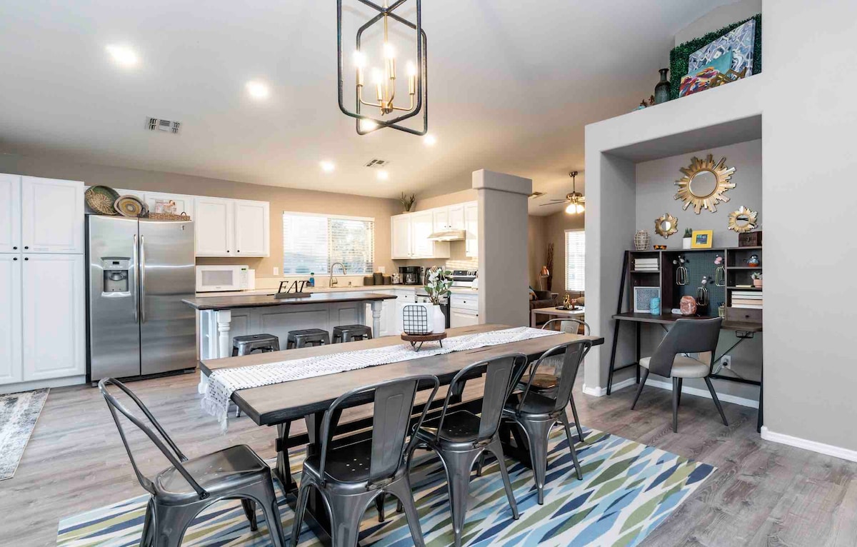 Entire home to yourself! Cozy 3 bedroom and 2 bathroom home only 10 minutes away from Westgate and Cardinals stadium. Be treated to all the luxuries with a king bed in the master with a private bathroom and 2 queen beds in their own private rooms. There is free parking on site and free wifi. Spacious open living and dining with a fully equipped kitchen. Our little home offers the perfect blend of beauty and peace inside the wonderful city of Litchfield Park and the luxurious comforts of home.