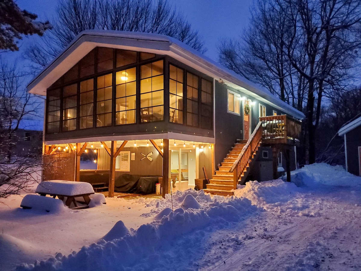 Skiing/Tubing season is almost around the corner! Escape to the "Eclipse", a Scandinavian-inspired modern cabin nestled on .5 acres overlooking endless woods. The Eclipse offers thoughtful amenities such as a striking gas fireplace, a fun arcade console, disc golf, laser tag, and a mouth watering popcorn cart for movie nights. Unwind in the hot tub under the stars or bask in the LED-lit A-frame charm. At 'Eclipse', all stars align for a truly magical stay.