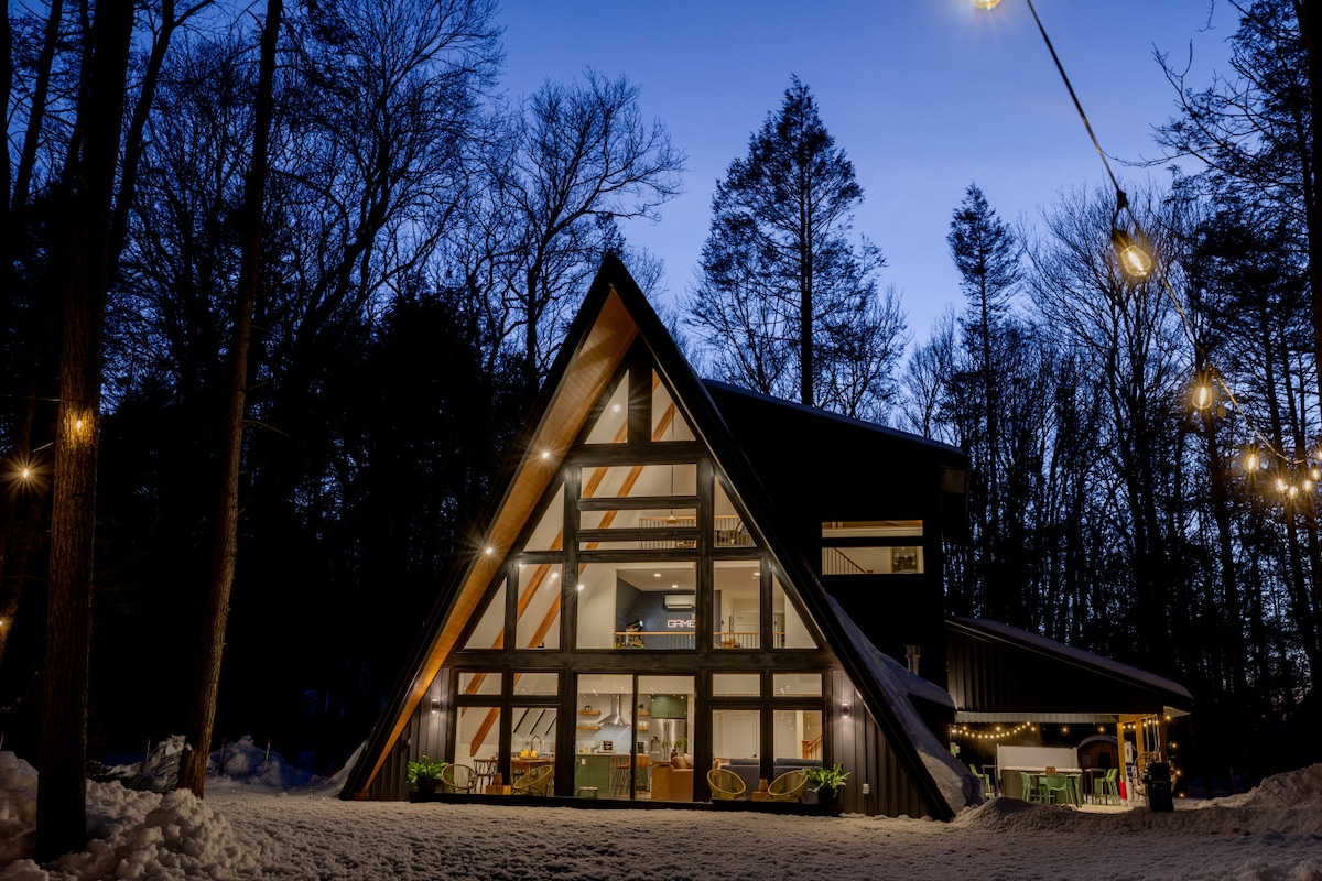 Welcome to the Cedar A Frame, where every detail is hand crafted for your memorable trip to the Poconos. Perfect for a romantic getaway, couple with 1 to 2 children, or individual escape for creativity. When you're ready, you can hit the areas hiking trails or rally out to the slopes. This authentic A Frame cabin features: -Propane fireplace -Outdoor firepit -Hot Tub -Full kitchen -Modern rustic professional design -55" Smart TV -4 Car Parking -High Speed Wi-Fi -Close to all area attractions