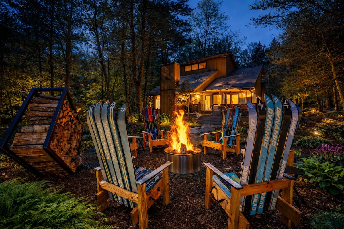 A truly unique stay in the Pocono Mountains, home to rolling mountain terrain, breathtakingly beautiful waterfalls, thriving woodlands, + 170 miles of winding river. Created with the “ultimate night in" themed experience, guests can sip wine under the stars in a private hot tub, + enjoy movies on their own 135" movie screen equipped w/ the world's first LED 4K gaming projector. Enjoy themed bedrooms and experience a stay where the forest takes you away as you stay in ultimate comfort + luxury.