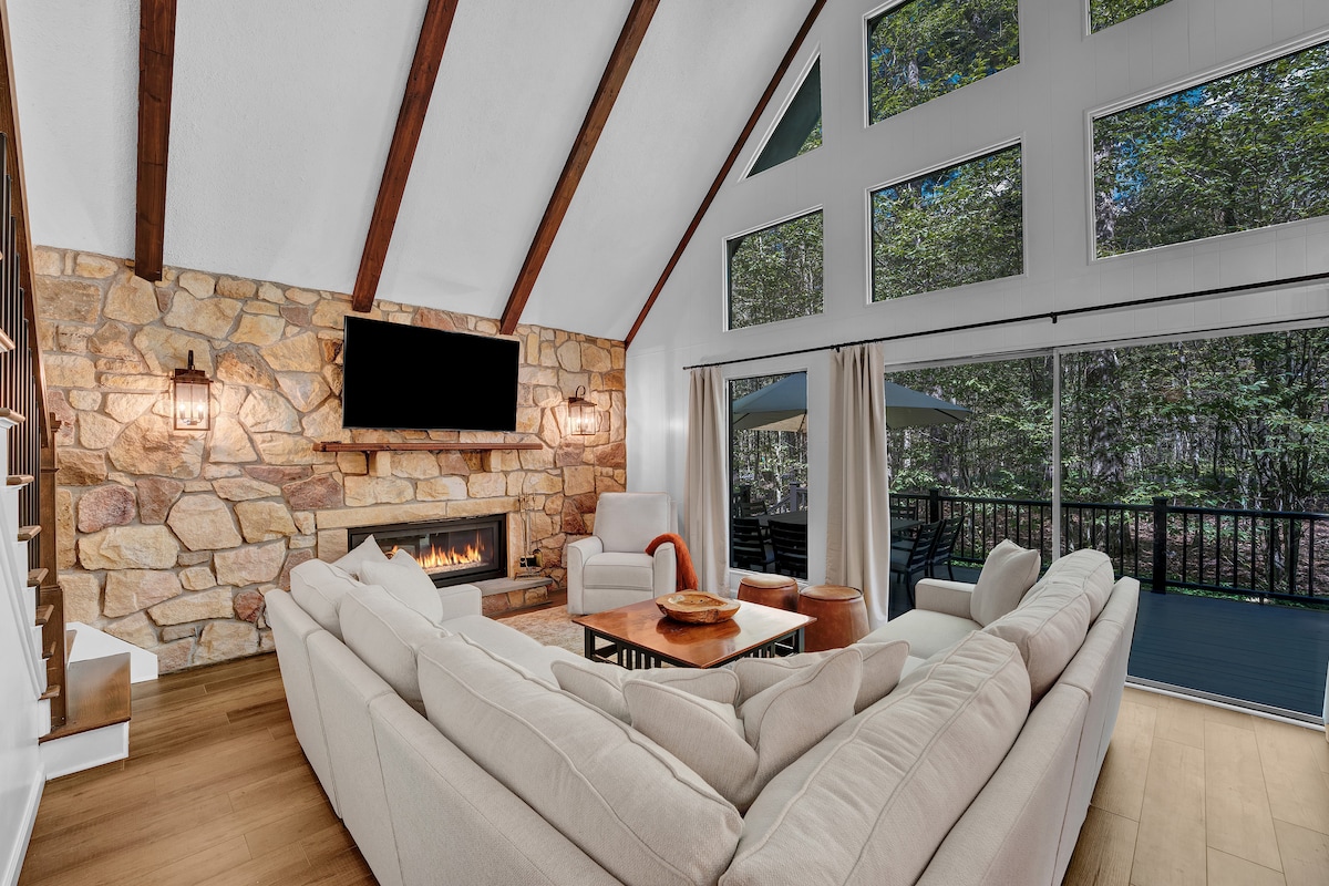 全新波科诺山 A 字型度假屋——幽静环境,可通往湖边