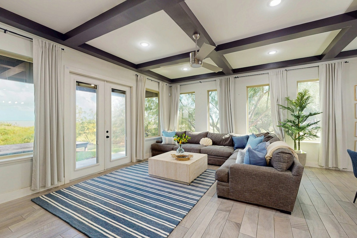 STEPS FROM THE BEACH! LUXURIOUSLY appointed in a spacious, bright, modern style, we made every detail perfect. The most beautiful sunrise you will ever see awaits you every morning. Every night, a beautiful sun sets over the Laguna Madre! Your lodging will be equally inspiring. Our ground level (No stairs!) condo is beautifully equipped, with spacious 10 ft high ceilings, LED lighting, new furnishings and appliances, smartTVs in all rooms, located easy walking distance to everything. ENJOY!