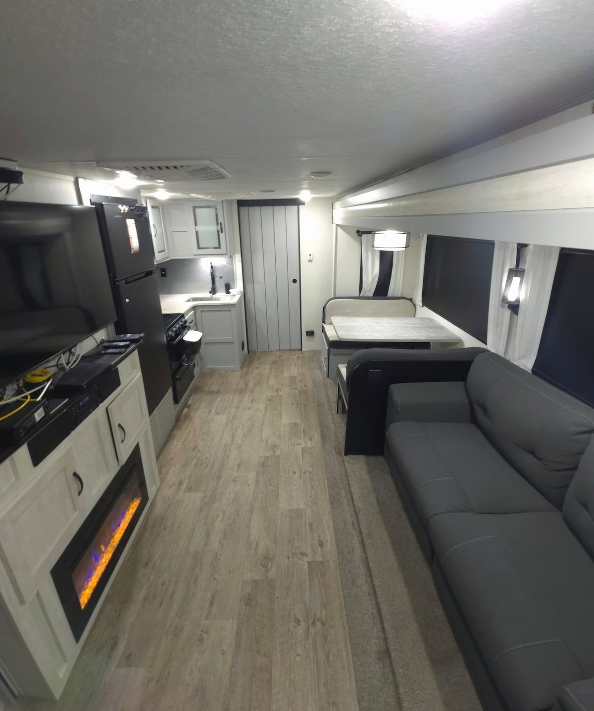 Spacious and family friendly 2025 rv near space x and bocachica beach. 2 bedrooms, 1 bathroom, 1 queen bed and 2 bunk beds, 3 a/c units with a full kitchen. 24hr security cameras monitoring the community calm and quiet. 2 car parking