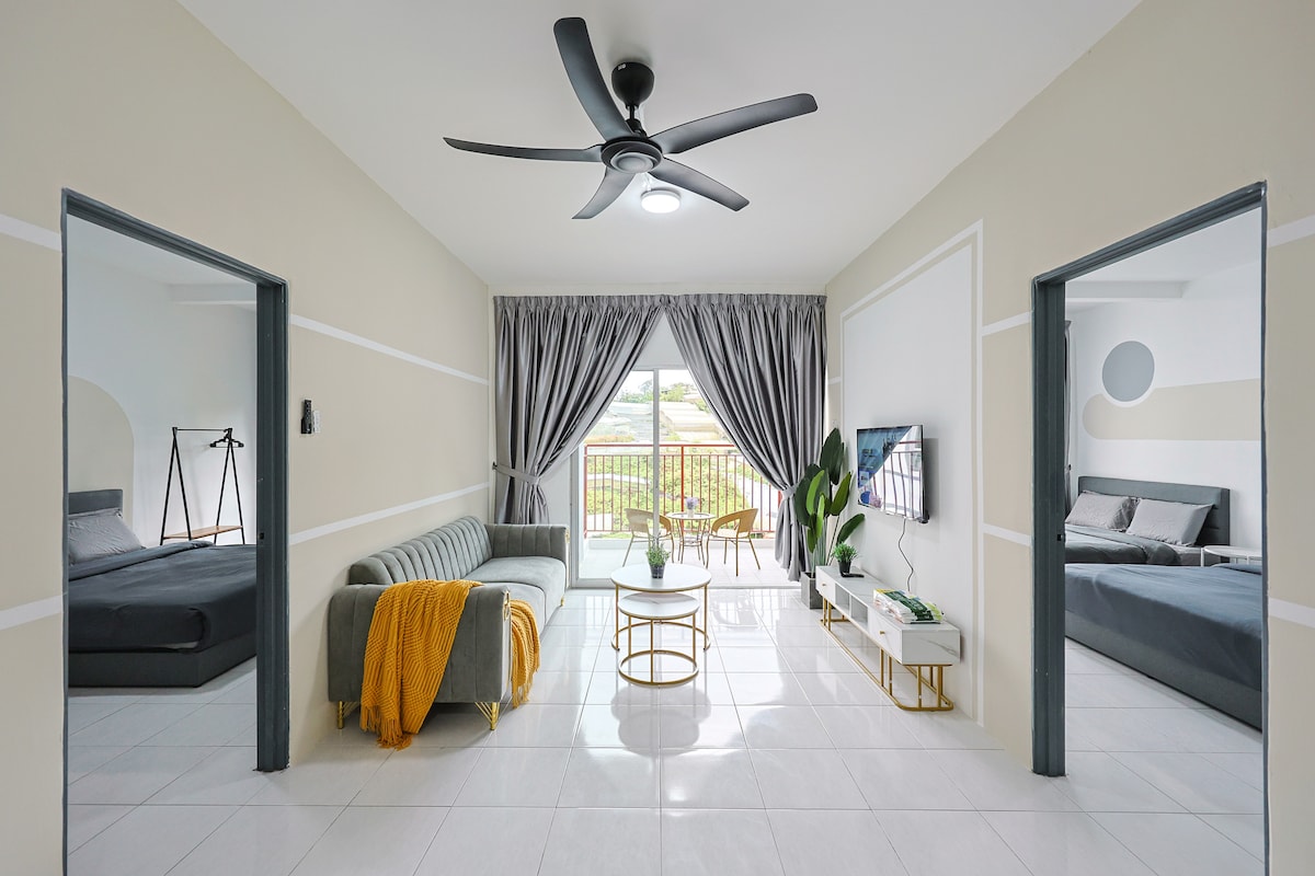 Facing greenery at highest floor in Brinchang town, Emeralds Avenue. 4 queens + 2 single beds for 10 pax & 3 baths. 3 car park near lift. Senior friendly. Fully fitted kitchen with Coway water purifier. Behind Centrum Mall. walking distance to more than 100 eateries, Burger King, KFC, Billion supermarket, wet& Cactus Valley. Free Unify & Netflix. 55” smart TV. We provide mahjong & carrom tables For 20 pax you can book connecting unit. EA922-Link https://www.airbnb.com/h/josplaceemera ma