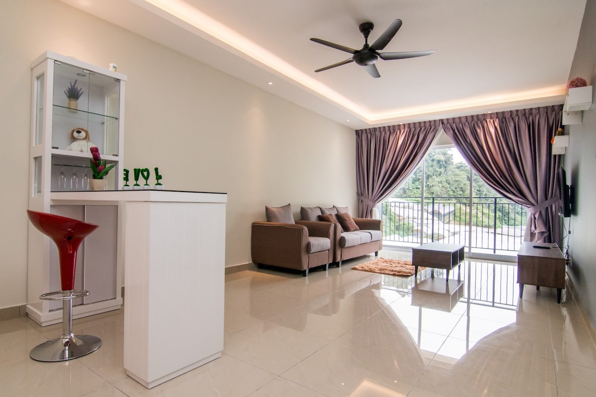 My brand new cosy home is a must-stay place for small families,couples or friends who are looking forward to have a relaxing and peaceful escapade at Cameron Highlands. My home is at Barrington Square,Golden Hills located between Tanah Rata and Brinchang,an apartment comes with roof top garden. You will enjoy breathtaking view & windy cool air from the forest upon hill valley.Famous night market is in front of the apartment - operates every Friday,Saturday,daily during school & public holidays.