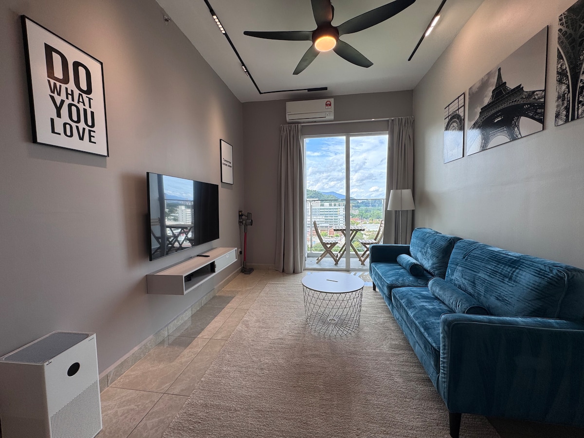 Welcome to our brand new cozy apartment with 3 bedrooms and 2 bathrooms. Each room featured a premium hotel bed with luxurious linens, a modern dining area & kitchenette. It can comfortably accommodate up to 6 guests. Our location is an unique place to stay with hassle free from traffic jam due to peak season. It is fit for small family, couples or friends who looking forward to rest and breath of fresh air. Our unit is strategically located opposite of Tea Plantation, it is just 1 mins walk.
