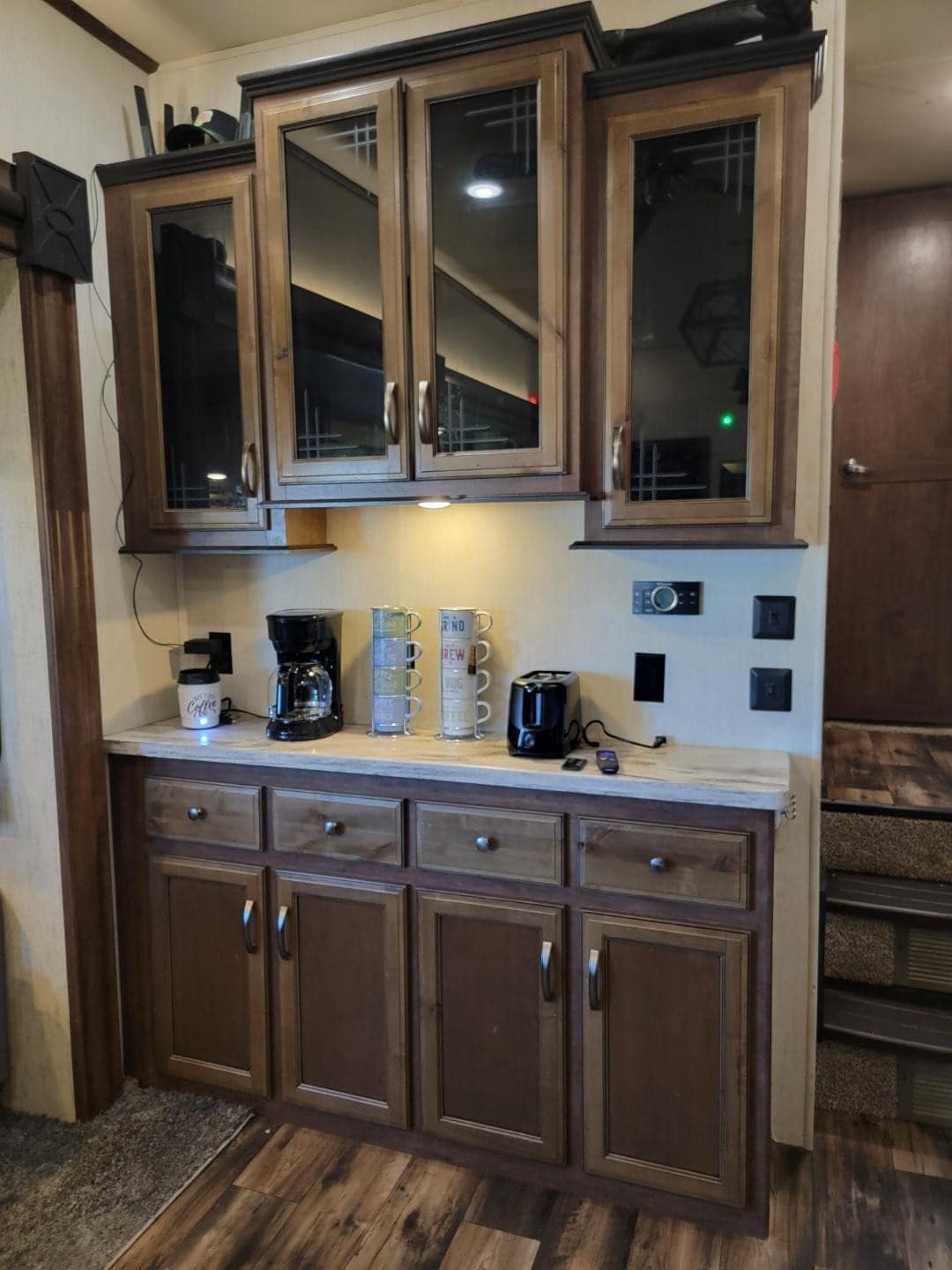 Never miss home in this luxury fifth wheel camper. With high ceilings and a spacious living room and kitchen area, you can't tell it's a camper. Two bedrooms -5 beds, two TVs, two bathrooms, and a coffee bar. You will only be 10 minutes from the CP2 site and down town Cameron, and just 1 mile from the beach! Whether you're here for vacation or work, this camper has everything you need.
