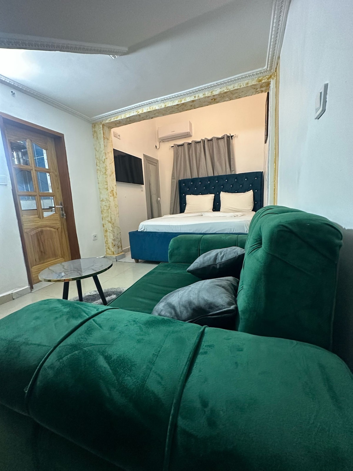 appartement meublé situé à Denver Douala derrière la mairie de Douala 5ème vous vous retrouverez dans un lieu comme à la maison disposant de toutes commodités cuisine fonctionnelle et un salon spacieux. 2 chambres confortables et climatisée . l'appartement dispose également d'un groupe électrogène en cas de coupure d'électricité. Nous disposons d'une connexion internet et de l'eau chaude. Vous disposerez d'une place de parking et d'un gardien pendant votre séjour.