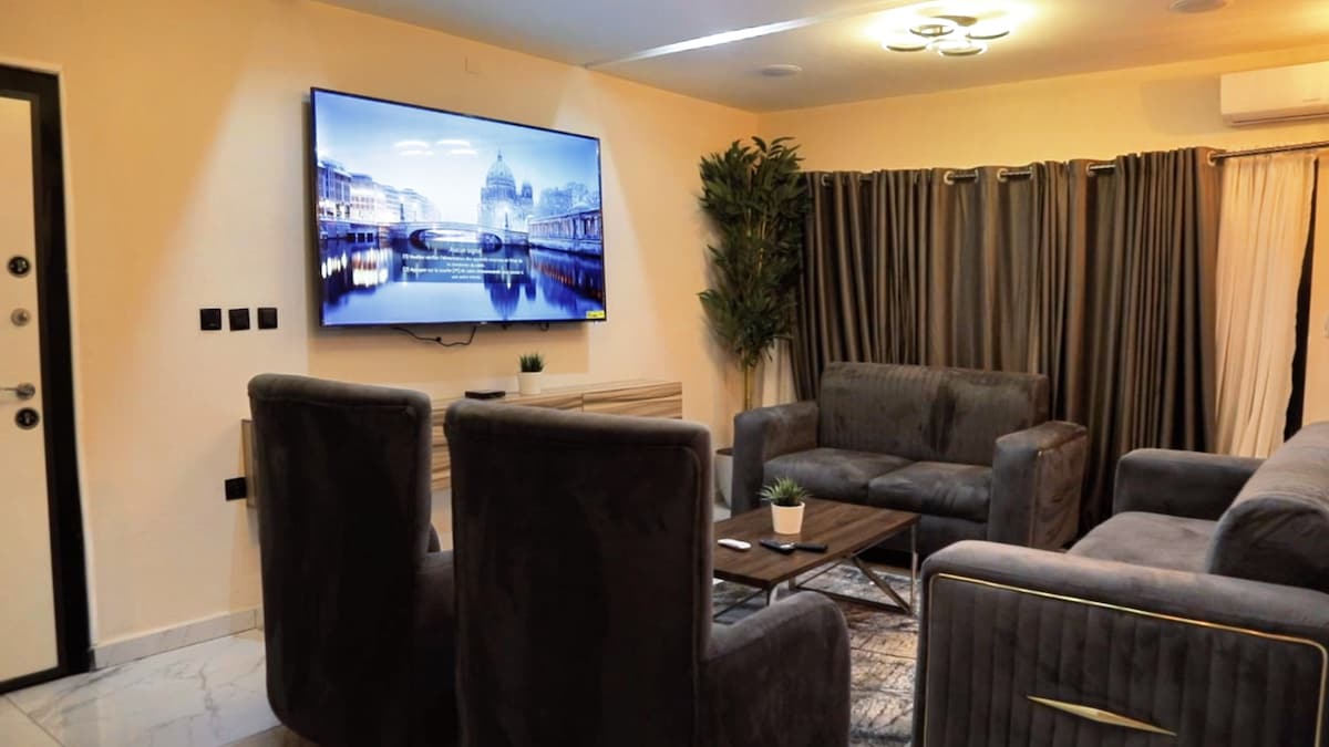 At Aimson Palace Enjoy comfort and lucky of satellite TV, High speed internet, AC, private parking, swimming pool, laundry service, you can also enjoy the hamman optonal, 24/7 security with surveillance cameras, gym and terrace. We also have a solar energy all furnished from the U.S.A.