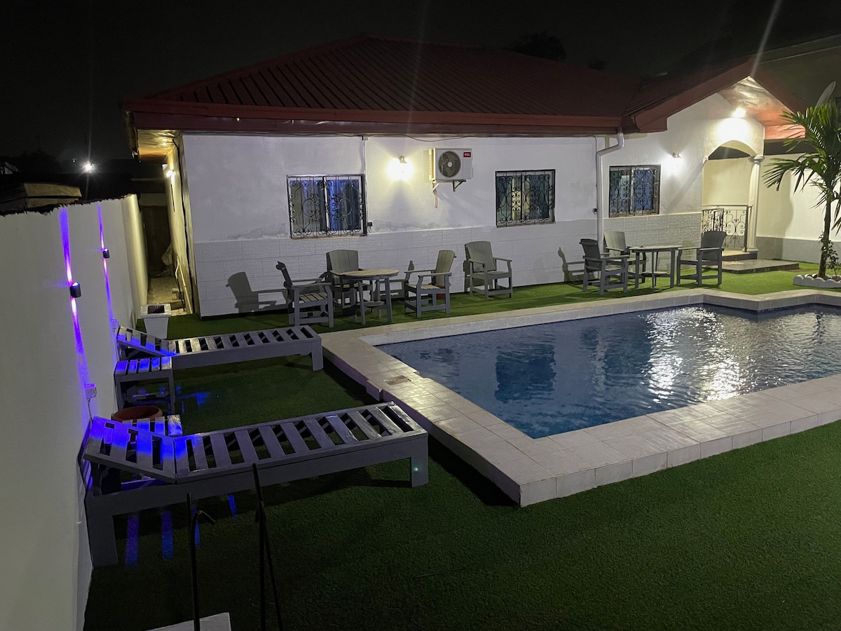 Luxe à Kribi: villa de 5 chambres autonomes, unique. Plongez dans votre piscine privée, détendez-vous au hammam, massage, gym, jacuzzi. Patio convivial pour moments magiques. Un séjour où confort, élégance et chaleur humaine s'unissent pour des vacances de rêve.