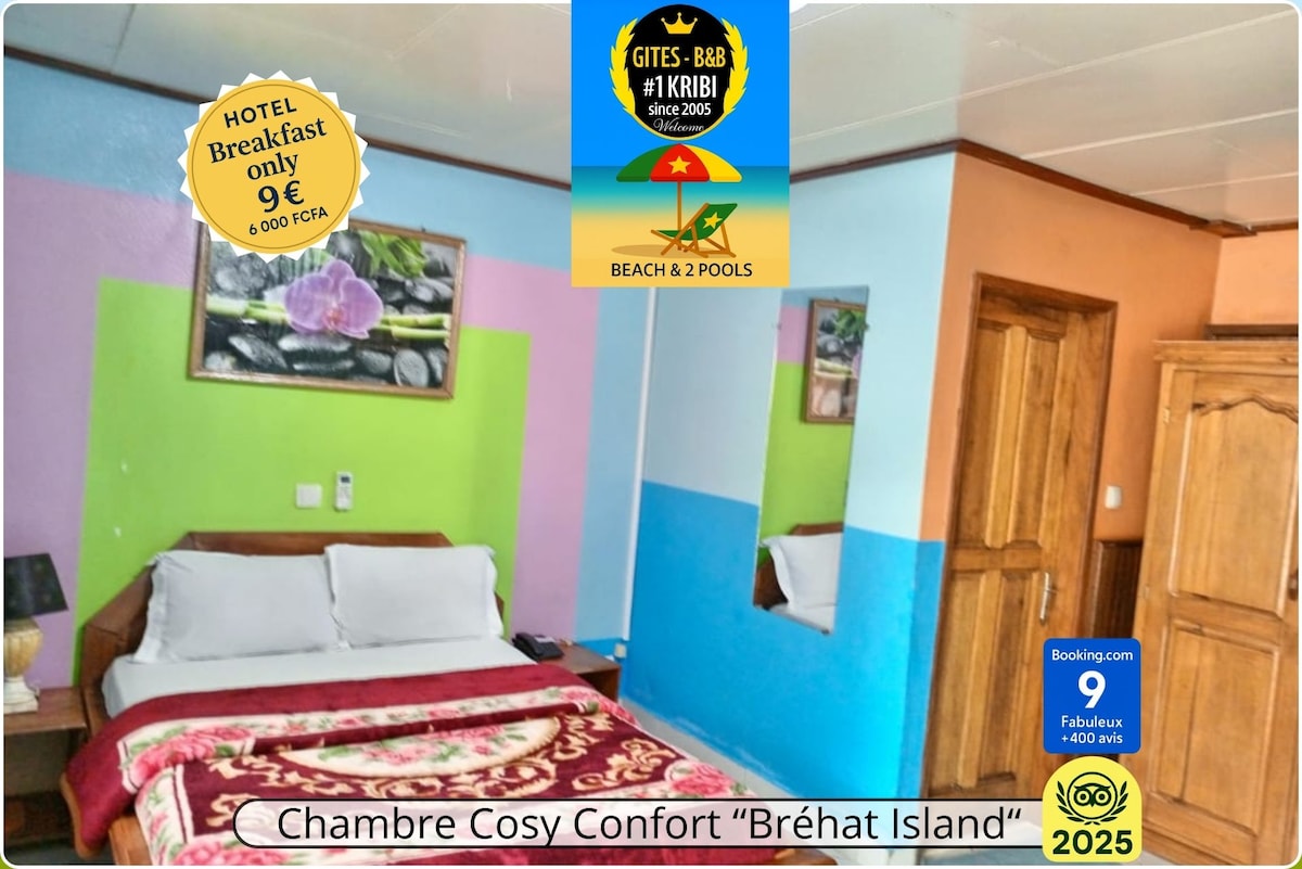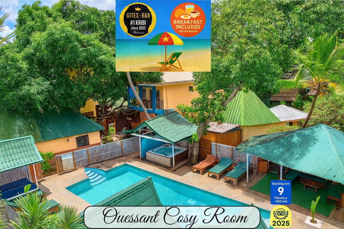 🏝 Île d’Ouessant – Chambre Cosy (Kribi) Chambre cosy et tranquille, proche piscine, pour voyageurs solo ou couples qui veulent profiter de Kribi à petit prix tout en restant dans un vrai resort en bord de mer. Climatisation, Wi-Fi, salle de bain privée, accès libre aux 2 piscines, à la plage à quelques minutes, aux transats, au bar et aux espaces de détente. Un bon point de départ pour découvrir Kribi et les chutes de la Lobé.