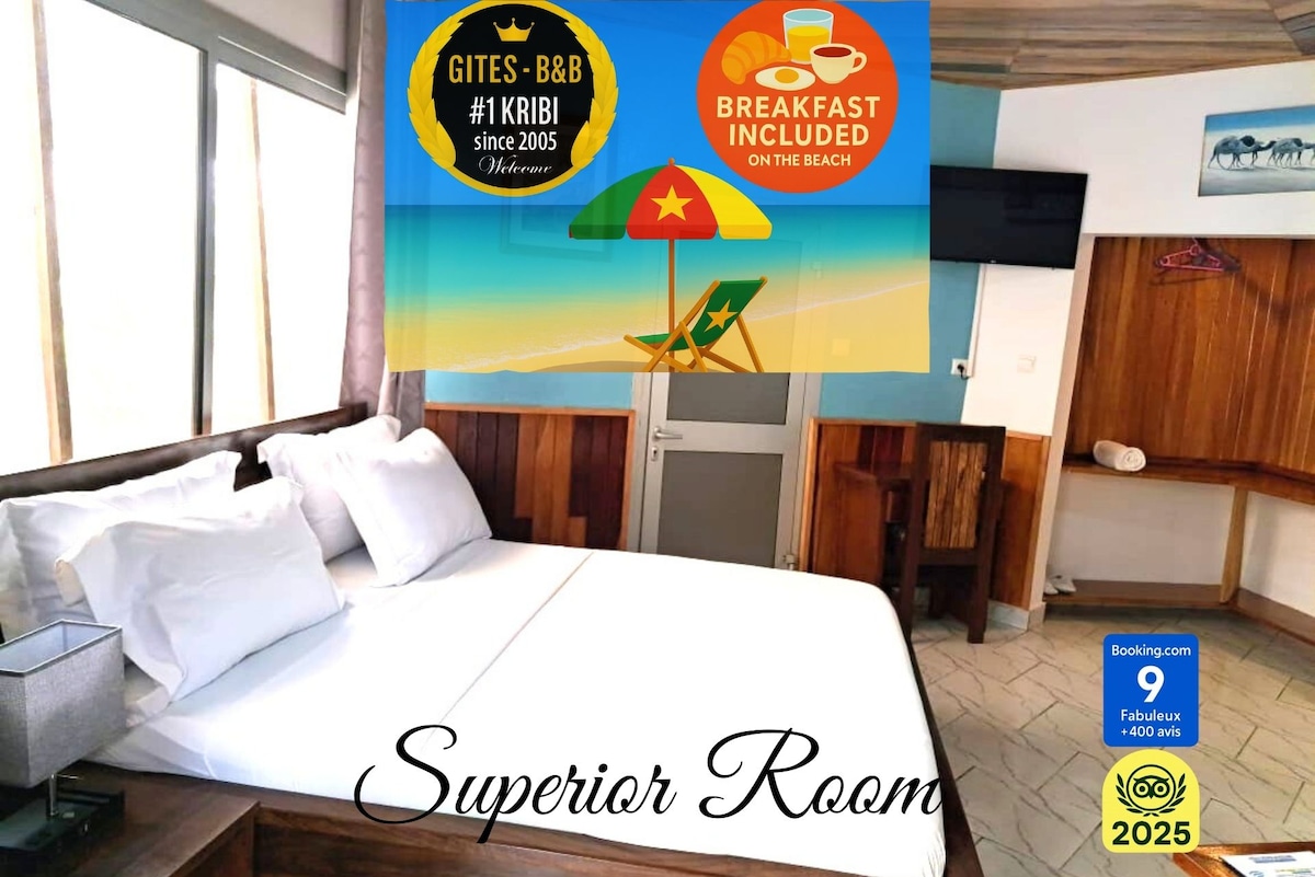 All-you-can-eat breakfast included. Cozy and comfortable room within the Gîtes de Kribi resort, ideal for a budget-friendly stay while enjoying the services of a full-fledged hotel: 2 swimming pools, beach just steps away, Wi-Fi, parking, 24-hour security, and a jacuzzi. You also receive a 10% discount on all your meals at the Au Plaisir du Goût restaurant. Just minutes from the Lobé Falls and downtown Kribi, enjoy a tropical atmosphere and a warm welcome from the staff.