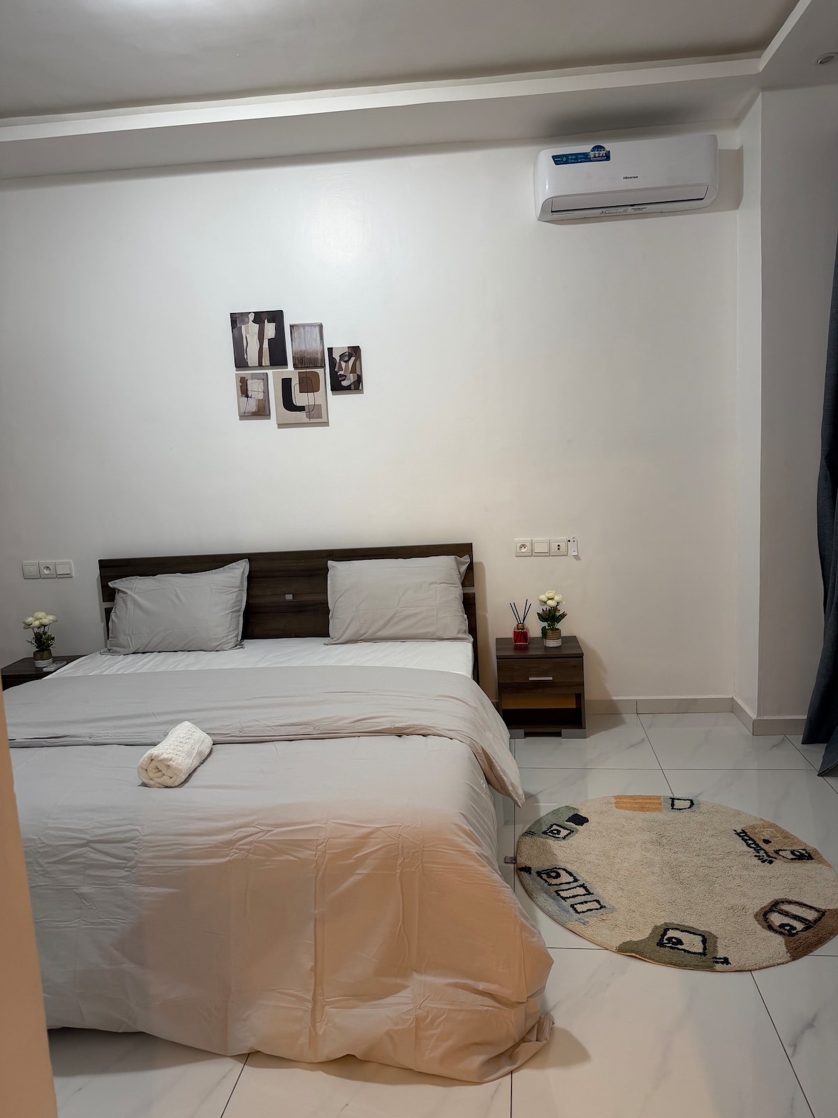 Surround yourself with style, comfort and safety in this beautiful space. Located in a quiet and tranquil area in the renowned neighborhood of ODZA, Yaoundé, close to the airport, city center and supermarkets, this exceptional apartment is designed in every detail to ensure you have a pleasant stay. A swimming pool and a steam room at your disposal, luxury spring foam mattresses in every bedroom to guarantee a great night’s sleep and electric energy backup system is provided in case of outage.