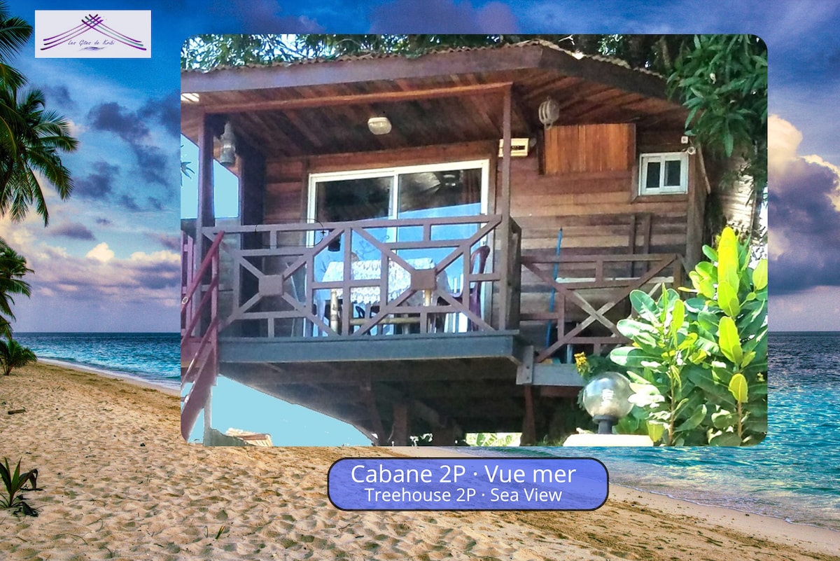 Cabane perchée en bois d'azobé local pour un séjour insolite au cœur de la nature. Ambiance “retour aux sources” dans un écrin de verdure. Idéale pour couples ou petites familles en quête de reconnexion. Accès aux infrastructures de l’hôtel pour allier confort et aventurement