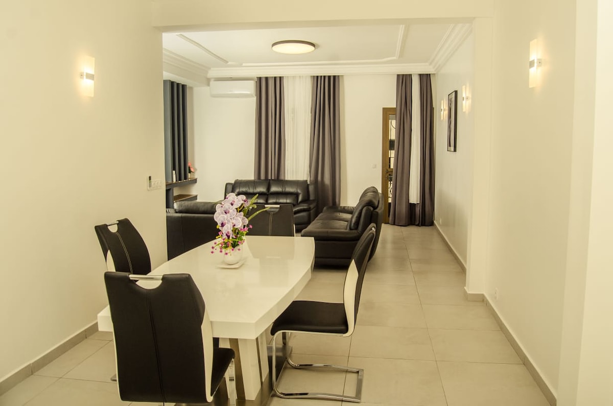 Amusez-vous avec toute la famille dans ce logement chic. Ultra moderne avec groupe électrogène, serrures intelligentes, cameras extérieurs. Abonnements canal+ et Netflix. Nous proposons une large gamme de services pour que votre séjour a douala soit inédit.