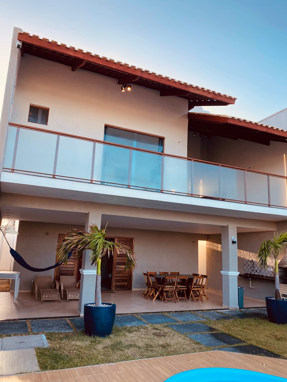 Casa Bela é uma casa de luxo totalmente equipada, situada numa localização privilegiada com vista panorâmica ao mar além de oferecer acesso direto á praia de Guriu. A casa apresenta uma mistura de design rústico, moderno e elegante. Tem 2 suítes espaçosas com charmosas camas de casal tamano queen com mosquiteiro, ar condicionado, tv led Smart Android 32' e Janelas que oferecem vistas deslumbrantes do mar e do mangue. A casa possui lavadora de roupas, churrasqueira, cofre e cameras de segurança.