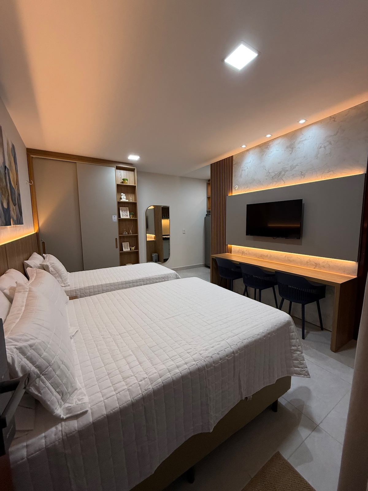 Relaxe com toda a família nesta acomodação tranquila. Localizada a 2km da praia e ao lado do aeroporto, faculdades e mercantis, tem uma mobília nova e moderna. Dispõe de ar condicionado, televisão, Internet, geladeira, máquina de lavar louças, entre outros itens. Dois quartos amplos, sendo uma suíte, banheiro social, área de serviço, garagem para dois veículos.