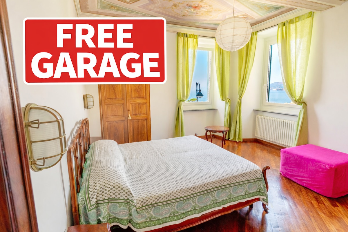 Prestigiosa porzione di appartamento indipendente con stupenda vista mare, due terrazzi, ampia cucina, due camere da letto matrimoniali, bagno con grande doccia. Nel verde,in zona collinare a 500 metri dal centro, dal mare e dalla stazione.Wifi gratuito, lavastoviglie, lavatrice, forno, frigo, tostapane, ventilatore, caffettiera, phon, lenzuola, asciugamani, detersivi e saponi. Adiacente posto auto privato gratuito. Disponibili numerosi accessori per neonati. CIN:IT010007C2Q8VBBRQF