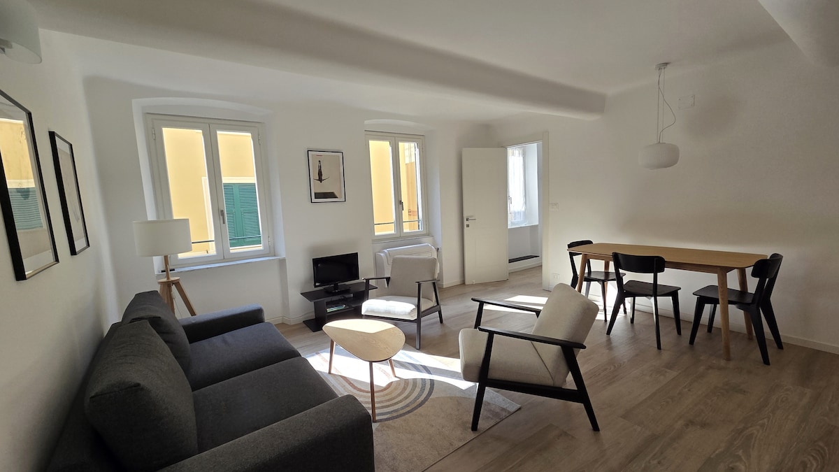 Appartamento di charme in pieno centro storico al primo piano, composto da leaving, due comere matrimoniali, bagno e balconcino; ogni locale è insonorizzato e climatizzato. Situato a due passi dal Lungomare e dalla Stazione Ferroviaria. Proprio sotto casa ristoranti, pub, locali, negozi tipici, supermercato e parcheggi a pagamento. Strategico per escursioni a Portofino, Cinque Terre, Genova.