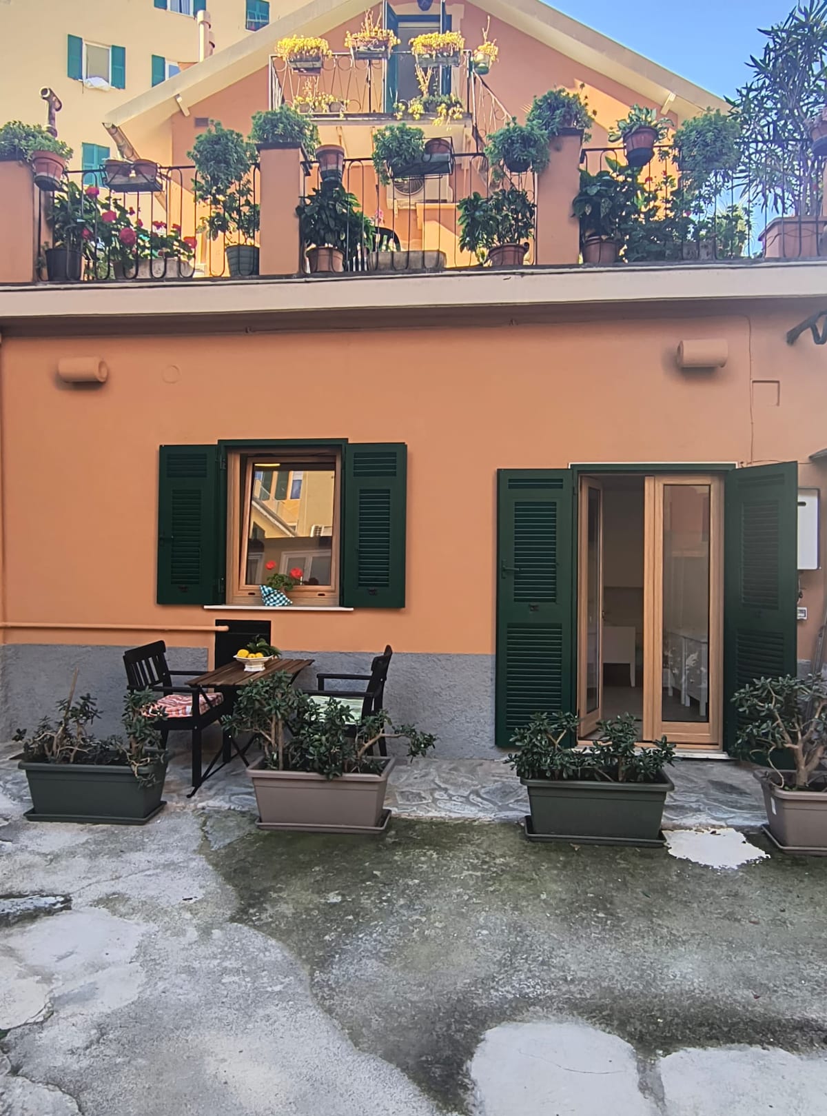 Nel cuore del lungomare di Camogli, a 5 passi dalla spiaggia, una piccola oasi privata ti aspetta: Una ampia casa accogliente con raro patio esterno, perfetta per colazioni lente e pause di quiete tra un tuffo e una passeggiata. Uscendo di casa ci si troverà direttamente sul mare e nel fulcro della vita del paese. Elegante casa ligure con dettagli in pietra di lavagna, composta da corridoio, cucina, salotto con divano letto, bagno, due camere da letto e spazio esterno.
