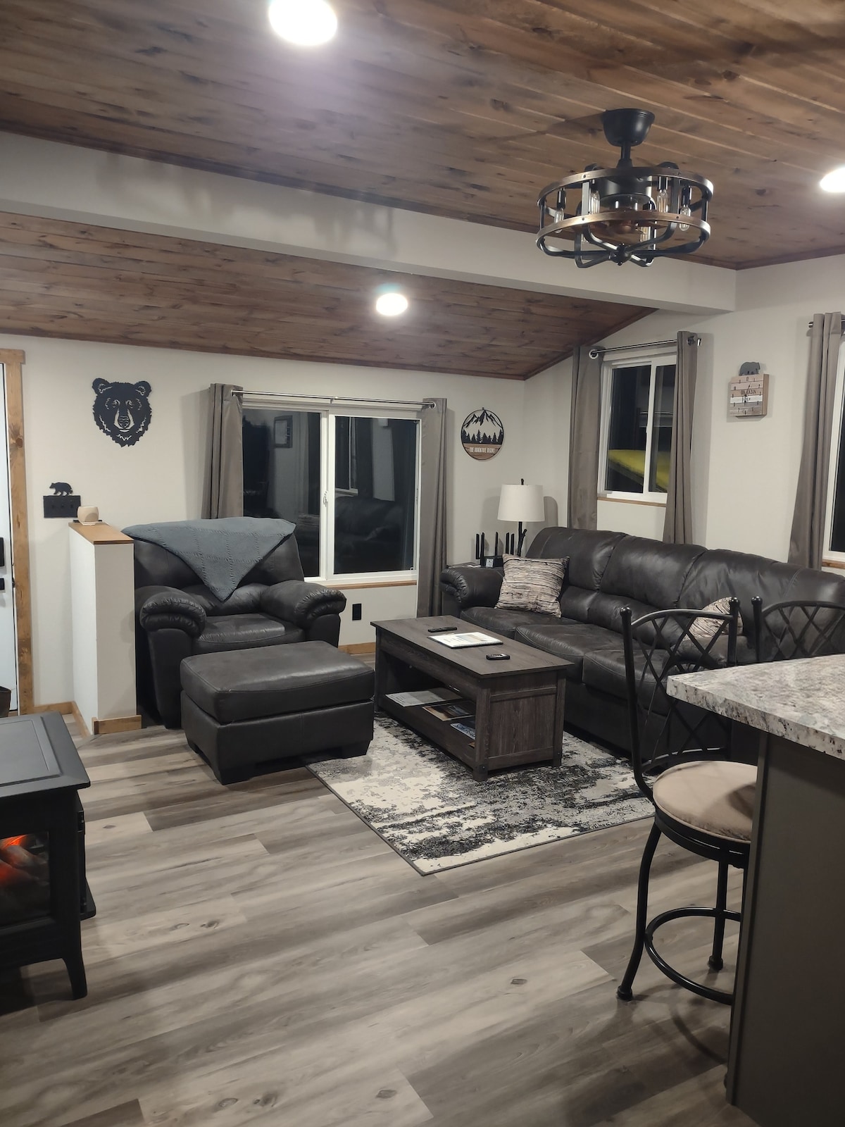 Resting on Star Lake and tucked into the north woods, this tiny home offers the tranquility you need to completely decompress. The Sasquatch Shores cabin is right on Star Lake, a quiet no wake lake that gives you the peace and quiet you want. Watch the sunset off of the dock or cast a line into the water! The cabin is also situated right on the ATV trail. The main offers a King sized bed and the guest room offers a Queen/Twin Loft bed. There is also sectional couch as a sleeping option!