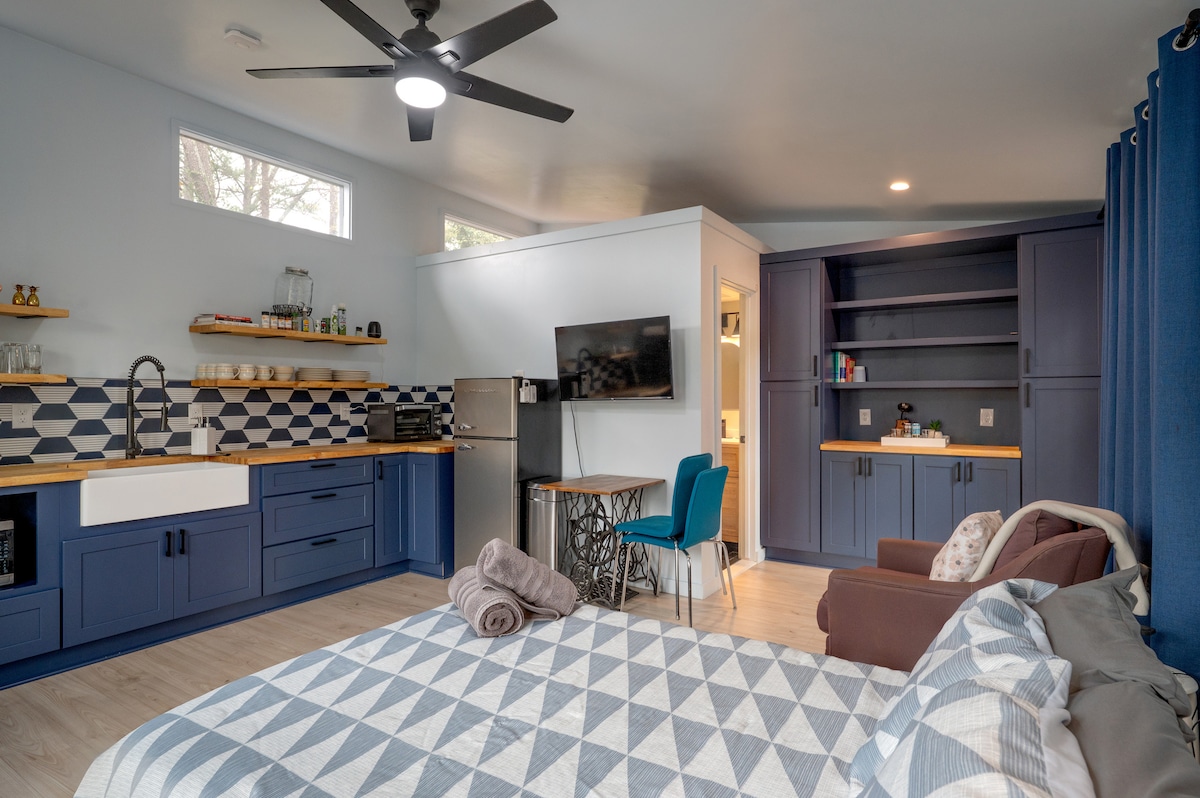 Newly built guest house in Kirkwood. Walk to neighborhood restaurants and Pullman Yards. Easy access to the beltline. East Atlanta, Inman Park, Candler Park, Cabbagetown, Reynoldstown, Grant Park, Edgewood, and Decatur neighborhoods are all within 5-15min away. This tiny house has so much to offer. Lots of light & vaulted ceilings, full kitchen, washer/dryer, luxury linens, outdoor patio space with fire pit. Plenty of room for work and play. Perfect for a weekend getaway or extended stays