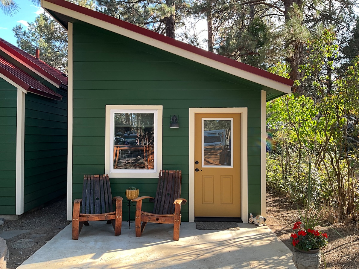 Our tiny log cabin is a cozy getaway, close to hiking, mountain biking, and cross country skiing but only 10 miles from the amenities of Bend Oregon. It is a rustic place, with modern touches, like a gas range, refrigerator, and a gas fireplace. The bathroom is detached from the cabin - steps from the door. It is fully equipped with plumbing and a shower. Our place is perfect for people who love the outdoors with the comforts of home. No children under the age of 12 -- And alas, No Pets.