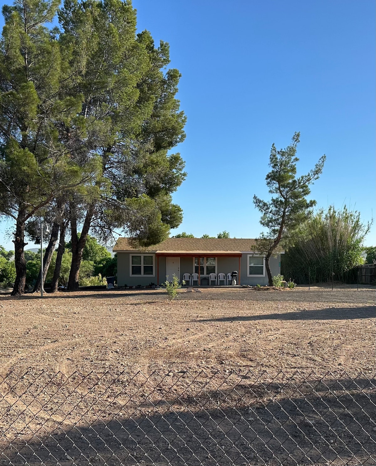 Relax and enjoy this family friendly Cottage backed up to Clear Creek Vineyard and Winery only 3 minute walk to the Winery. Just 2 miles from Fossil Creek turn off. Screened in front porch and very private back yard with gas fire pit to relax and unwind. Very quiet neighborhood. Only 10 minutes from I-17. Only 30 minutes from Sedona or 20 minutes from beautiful pine trees. Only 15 minutes from Out of Africa 30 minutes from Historic Jerome.
