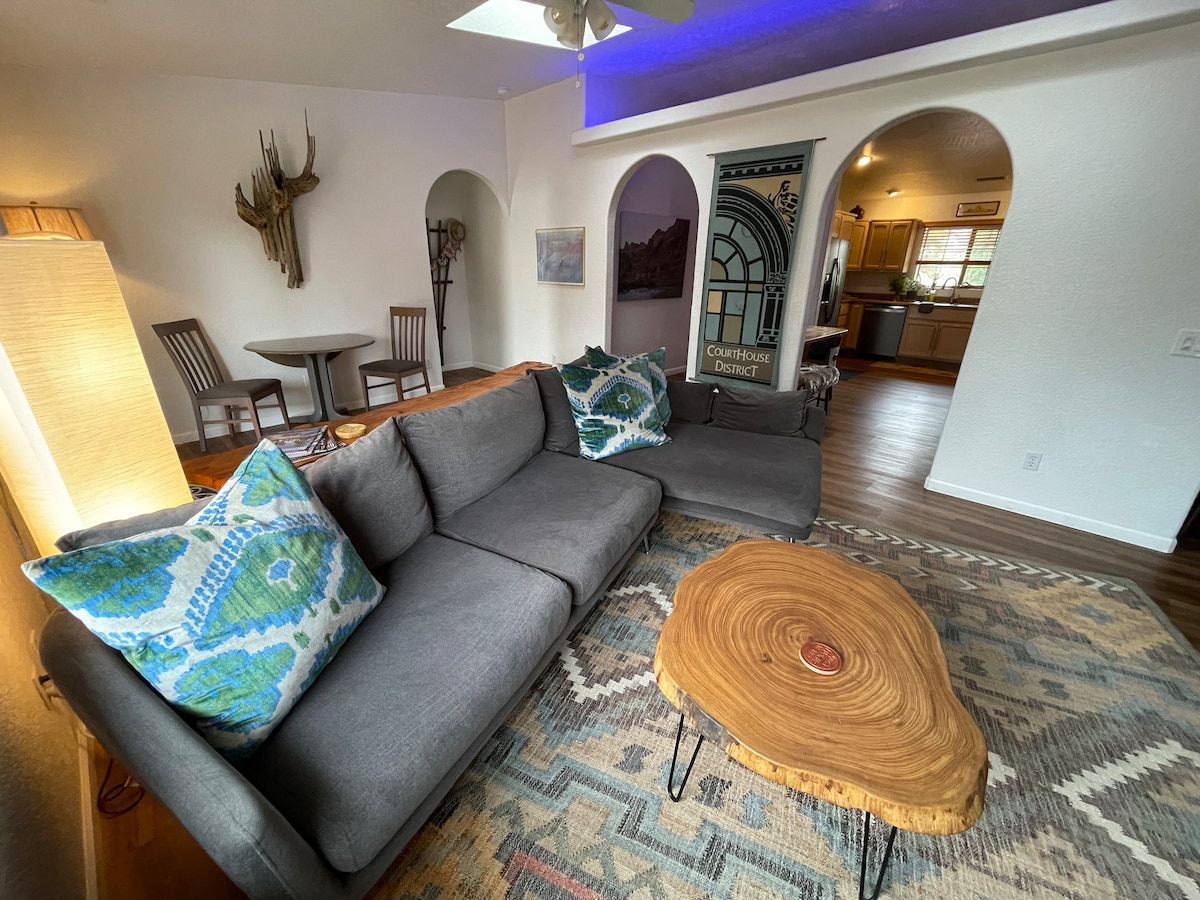 Welcome to Lazy Lariat Pines! This memorable cozy casita is anything but ordinary. Settled in a quiet countryside surrounded by mountainous desert this lovely home boasts with Southwestern charm. The space is so inviting it actually makes you lazy; warm lighting, comfortable sofa and queen size bed, fully fenced yard where you can stretch on a couch and relax or have your morning coffee on the charming patio. It is a place to happily come back to after exploring the wonders of Verde Valley.