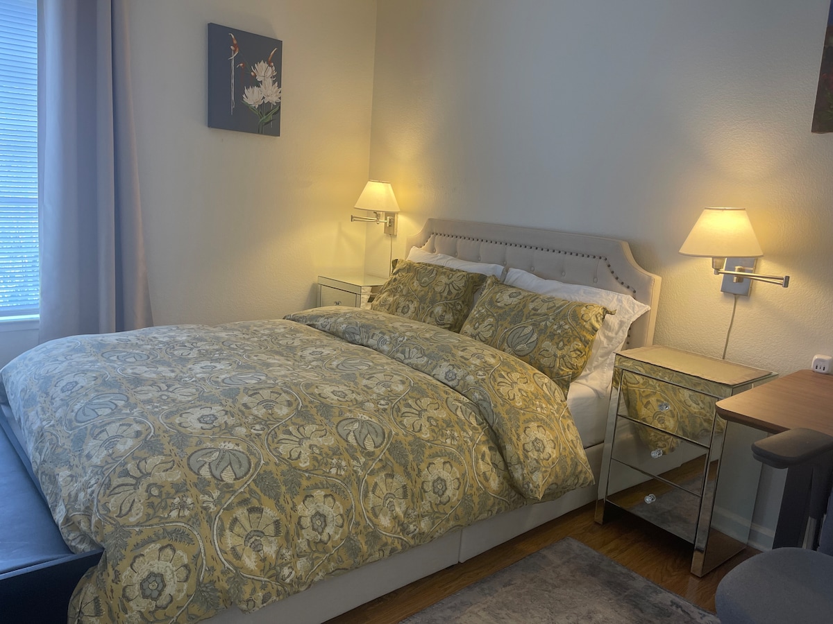 Our charming private guest room (suite) is located on the first floor of a townhouse if you want a private, comfortable, and centrally-located place. The room has a queen-sized bed, a huge closet, and a stocked bathroom. Our self-check-in system allows for flexible check-in times anytime after 3 pm. Ideal for Stanford or downtown Palo Alto visitors, nearby grocery and convenience stores. An excellent choice for a comfortable and private stay in Palo Alto.