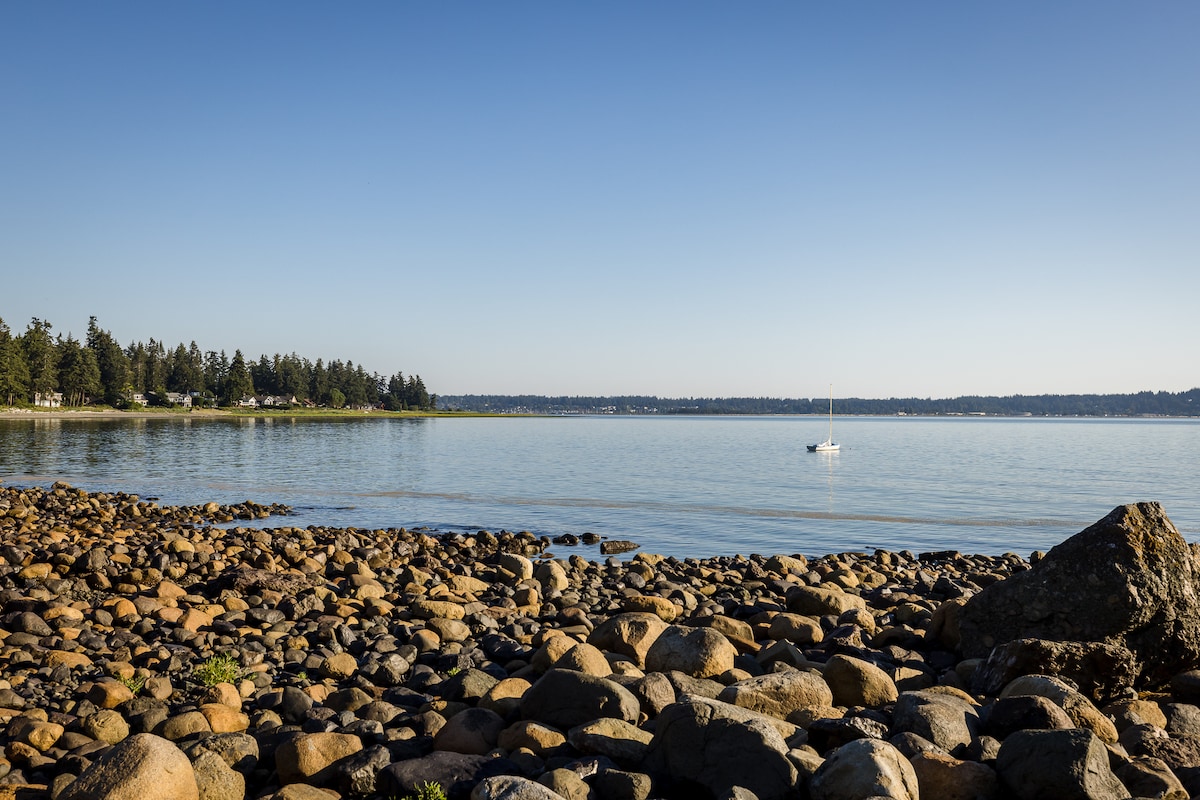 Beautiful 2 bedroom ground level suite with the beach at your doorstep. Relax and enjoy the sunrise while the eagles, whales, and other wildlife play. Take a ride on our paddle boards or kayaks, roast a s’more by the fire on the beach or cast a rod while coho are running in the fall. There is always so much to see and do at the beach! We are a 6 minute drive from the airport, 15 minute drive to downtown and only 40 minutes to Mt. Washington Ski Resort... Welcome to Paradise!