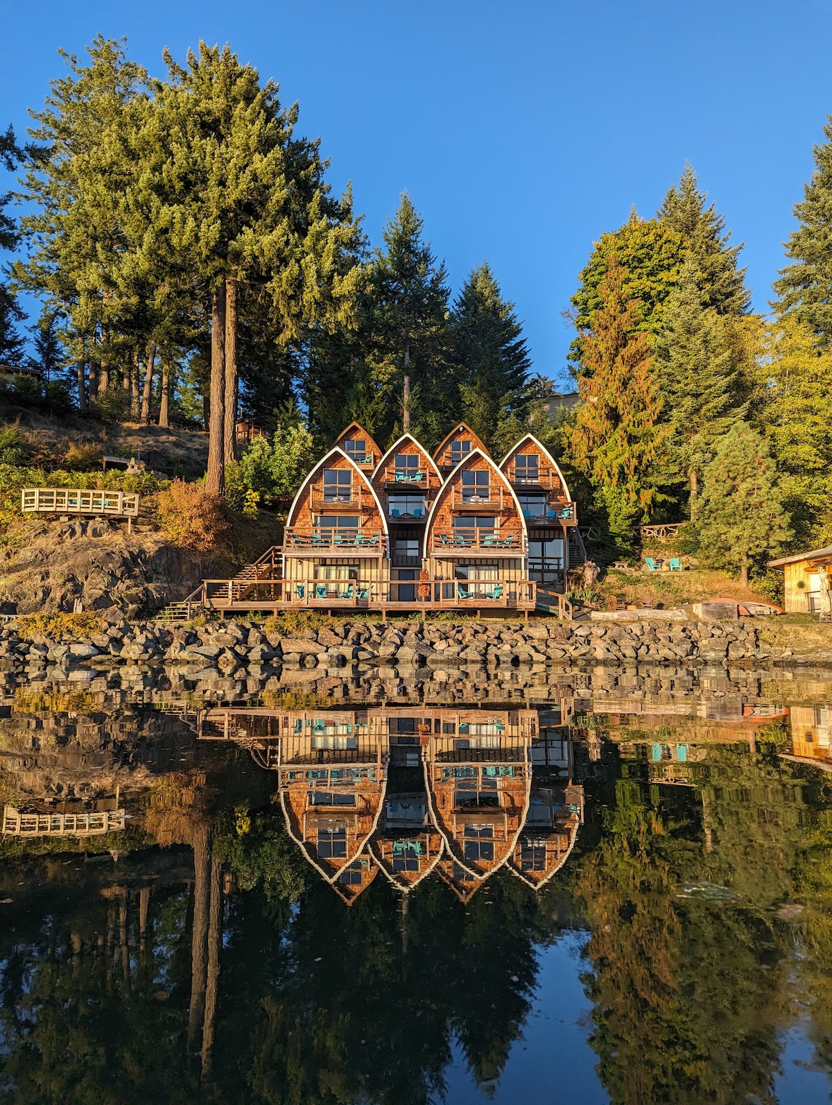 You won’t want to leave this charming, one-of-a-kind place. Located in Gowlland Harbour on Quadra Island, Jade Resort is a whimsical place to stay. 10 private suites are built into the hillside overlooking the water. Relax and watch the tide shift from your comfortable space. Minutes to beaches, trails, and Rebecca Spit Provincial Park. In each suite, you'll find a monocular to scope out the harbor. There are no TVs in the suites - an intentional choice to highlight the gorgeous views.