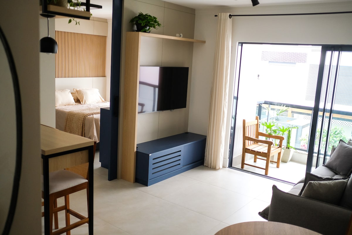 ENG: Modern, cozy sea view apt (86m²), 5G internet (1000Mbps), for up to 4, just across from one of the island’s best beaches. Ideal for long-term stays. Pool + gym. BR: Apto moderno e amplo com vista mar (86m²), internet 5G (1000Mbps), para até 4 pessoas, a 3 min a pé da Praia do Campeche. Perfeito para estadias longas. Piscina e academia ESP: Depto moderno y espacioso con vista al mar (86m²), internet 5G (1000Mbps), para 4, a 3 min de la playa. Ideal para estadías largas. Pileta y gimnasio