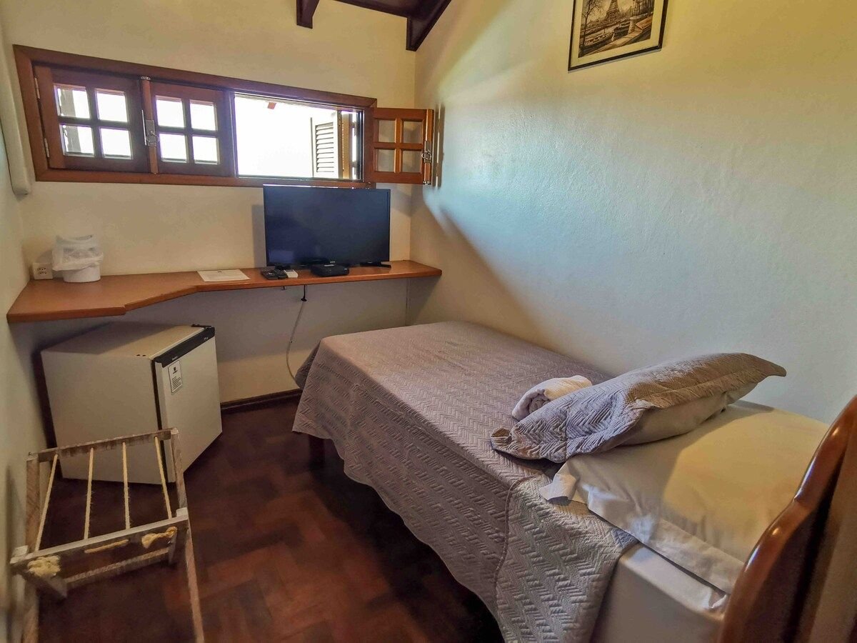 Aproveite sua sacada privativa com mesa e cadeiras para contemplar a beleza da baía de Pântano do Sul. A suíte conta com: - Banheiro privativo - Ar-condicionado - Frigobar - TV - Wifi.