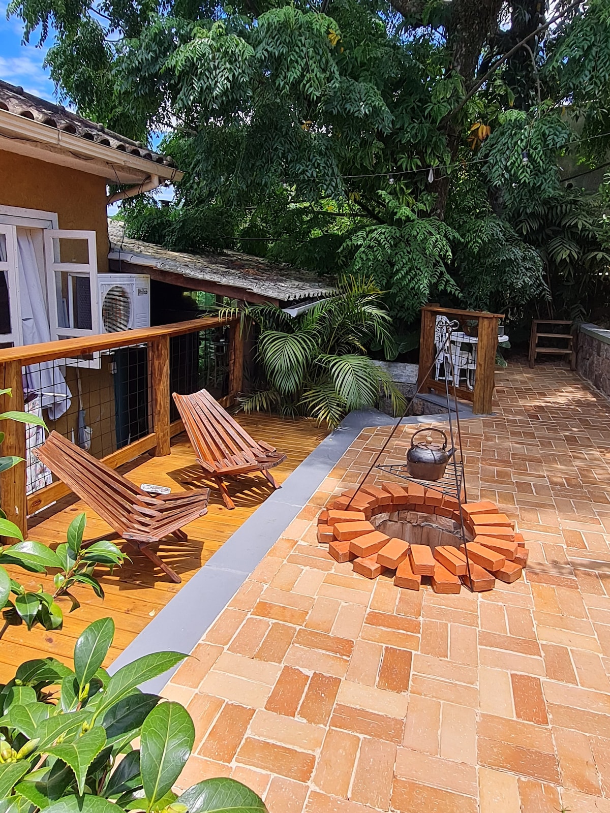 Anexo boho, retrô e nostálgico, totalmente climatizado e privativo, com entrada independente e escada caracol icônica. No segundo andar da casa principal, acomoda até 4 pessoas: suíte com cama box queen e mais pequeno quarto anexo com beliche (1,50x2m). Oferecemos a praticidade de uma pequena copa e enxoval completo com itens de praia. Piscina de uso exclusivo e prioritário dos hóspedes, lindo jardim e localização privilegiada na Lagoa da Conceição.