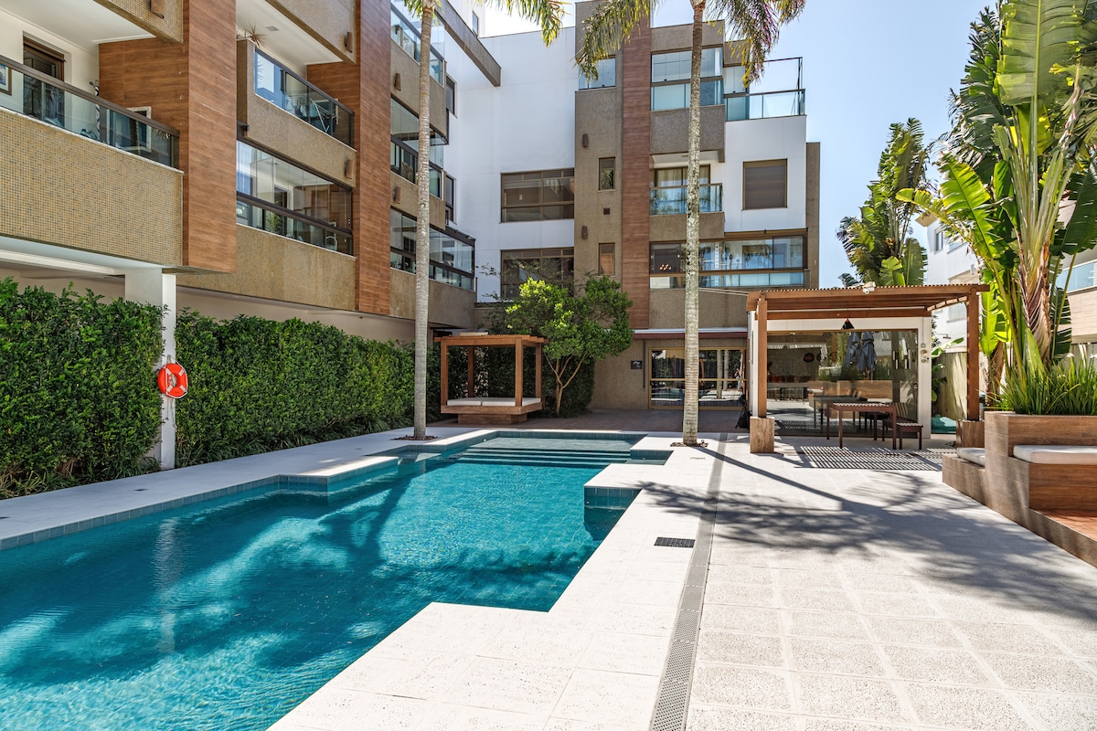 Luxury penthouse with total privacy, ocean view, jacuzzi, barbecue and large outdoor terrace in front of Campeche beach, one of the most beautiful beaches in Florianópolis! Spending your vacation at the Thai Beach Home Spa condo is like being at a 5 star resort! With a heated indoor pool, outdoor infinity pool, indoor and outdoor jacuzzis, gym, playground, an incredible common area! Central location near restaurants, bakeries, supermarkets and shops.